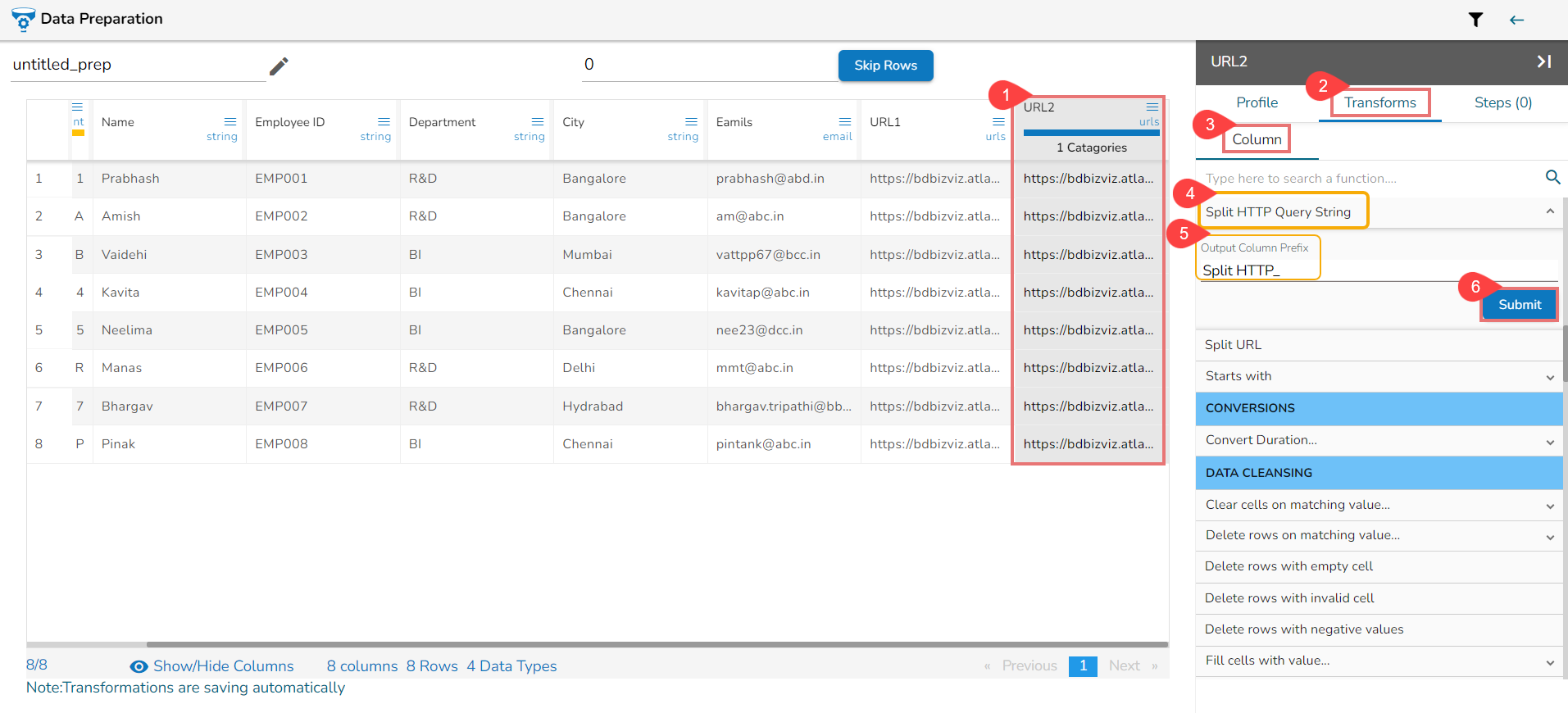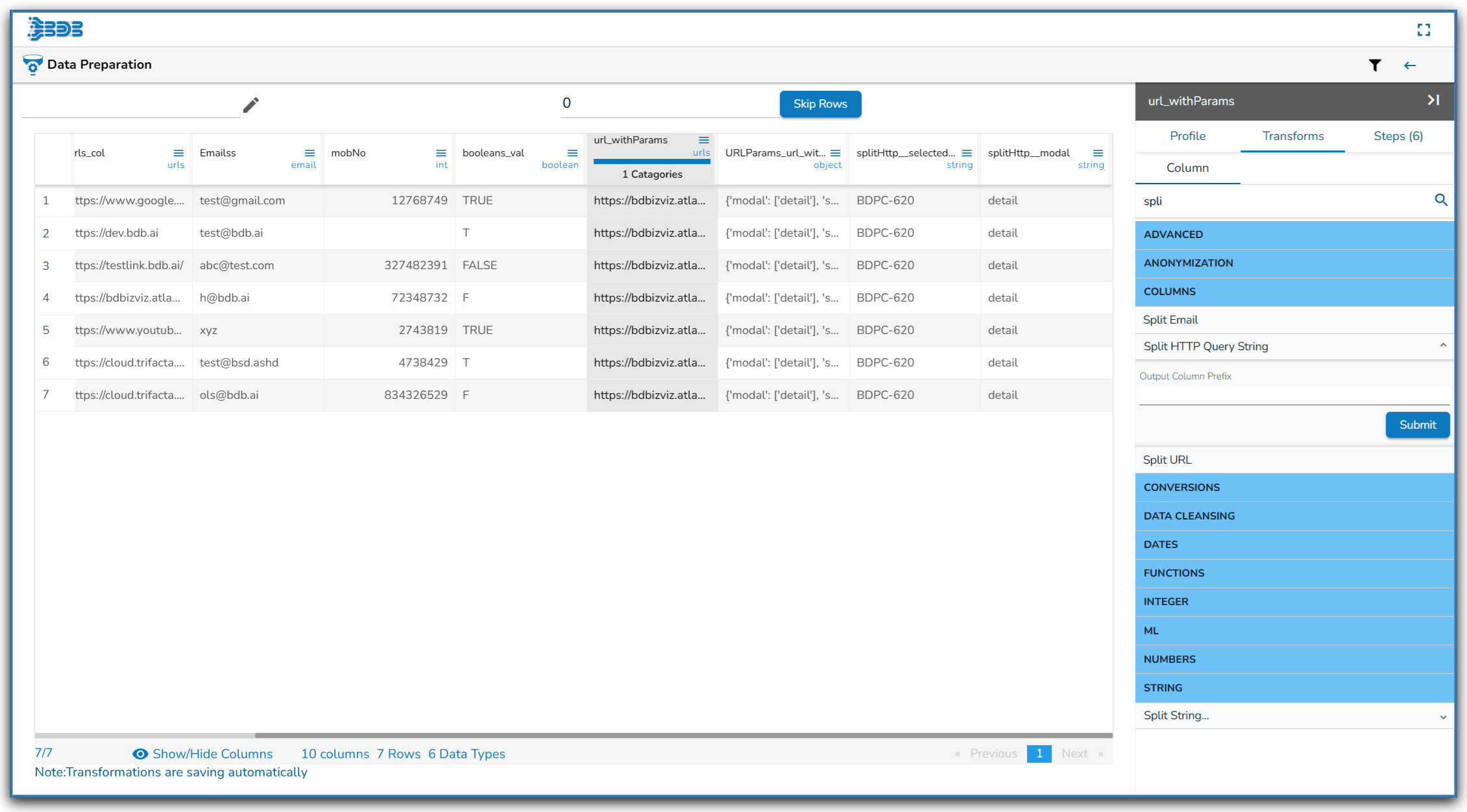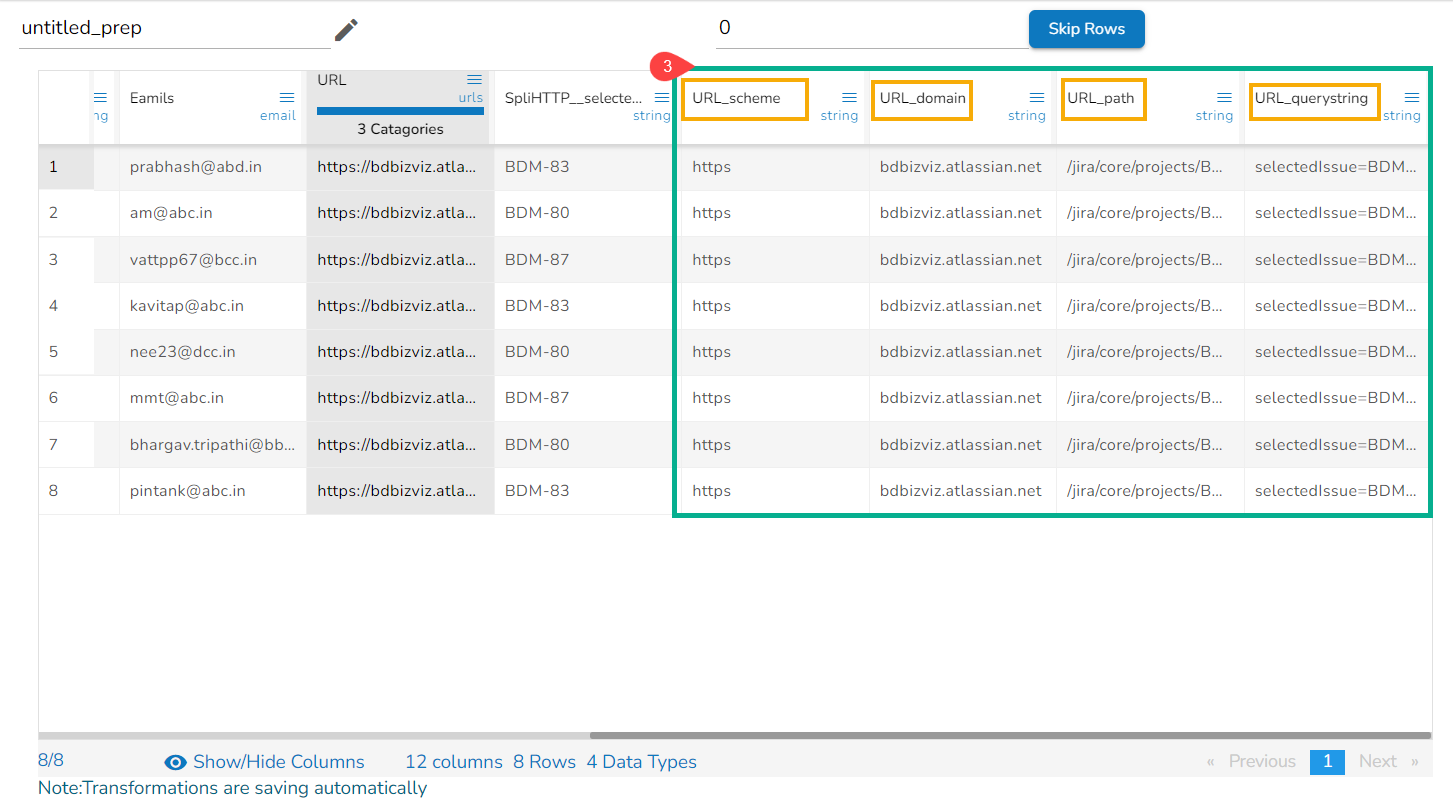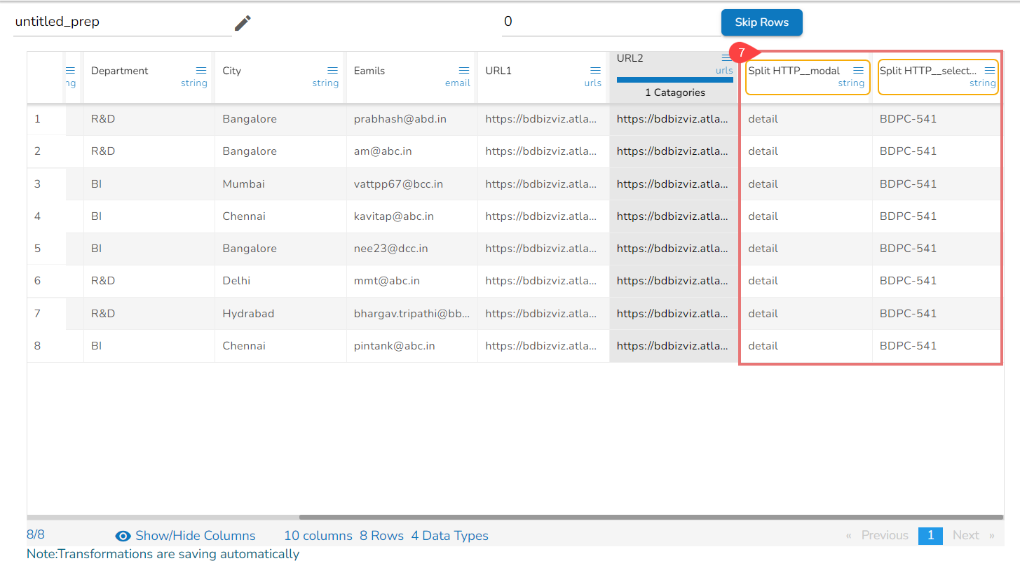 Please Note: The output of the Split URL will be displayed into multiple columns prefixed by the input column name.&#x20;