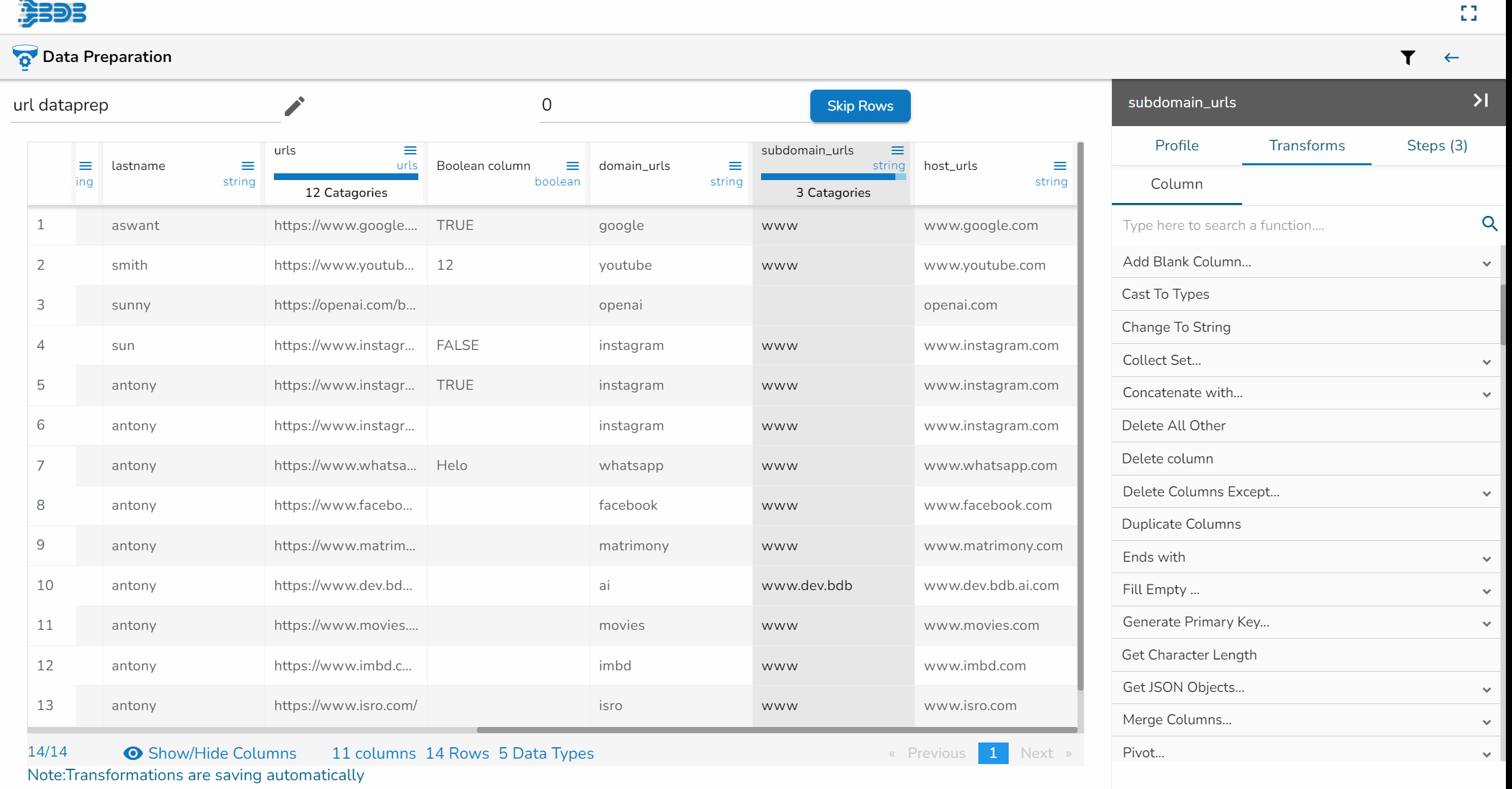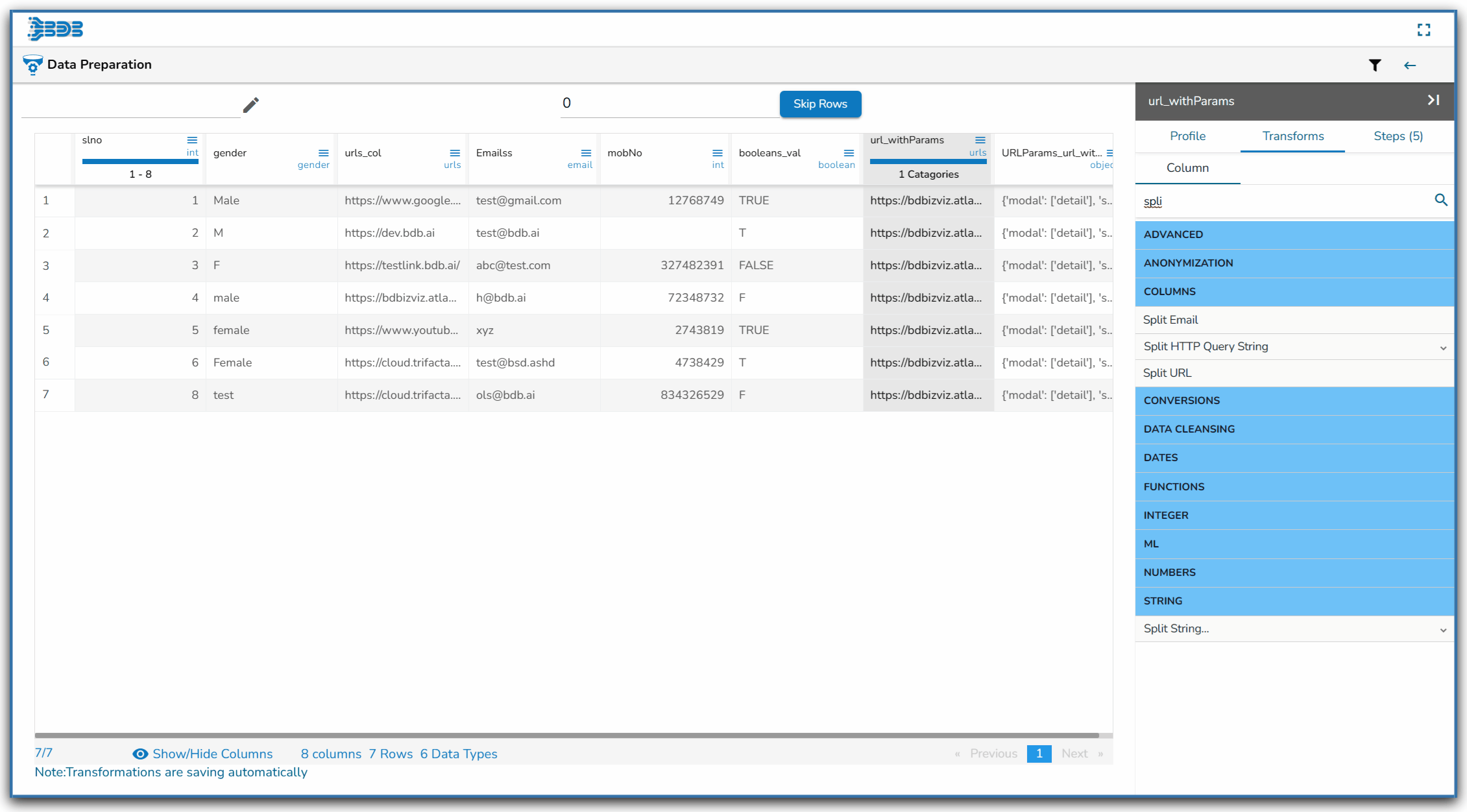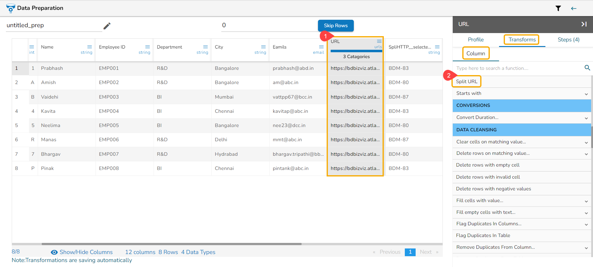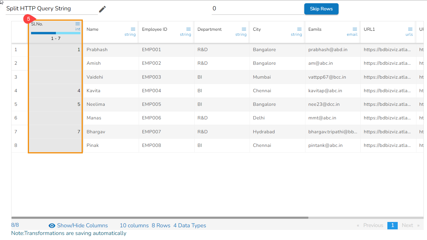 Please Note: The output of the Split URL will be displayed into multiple columns prefixed by the input column name.&#x20;