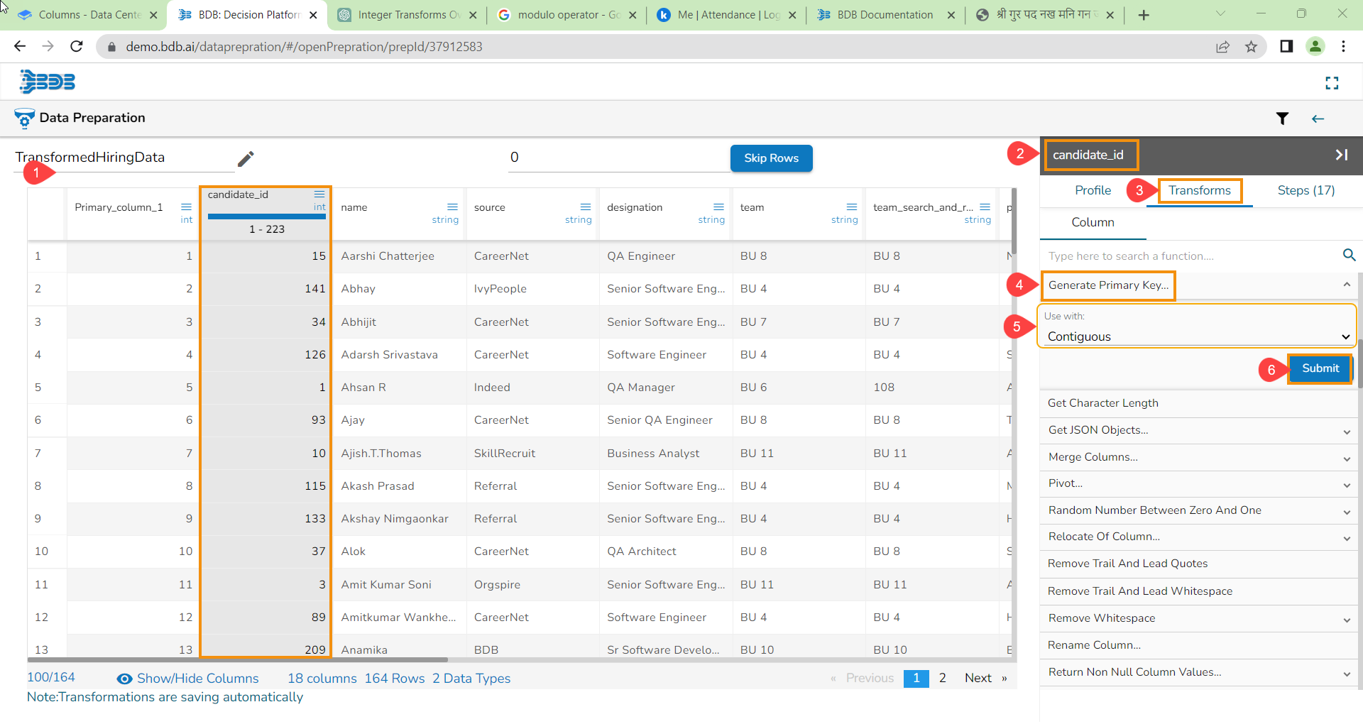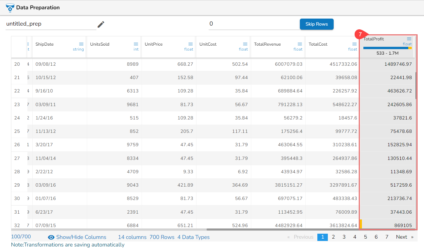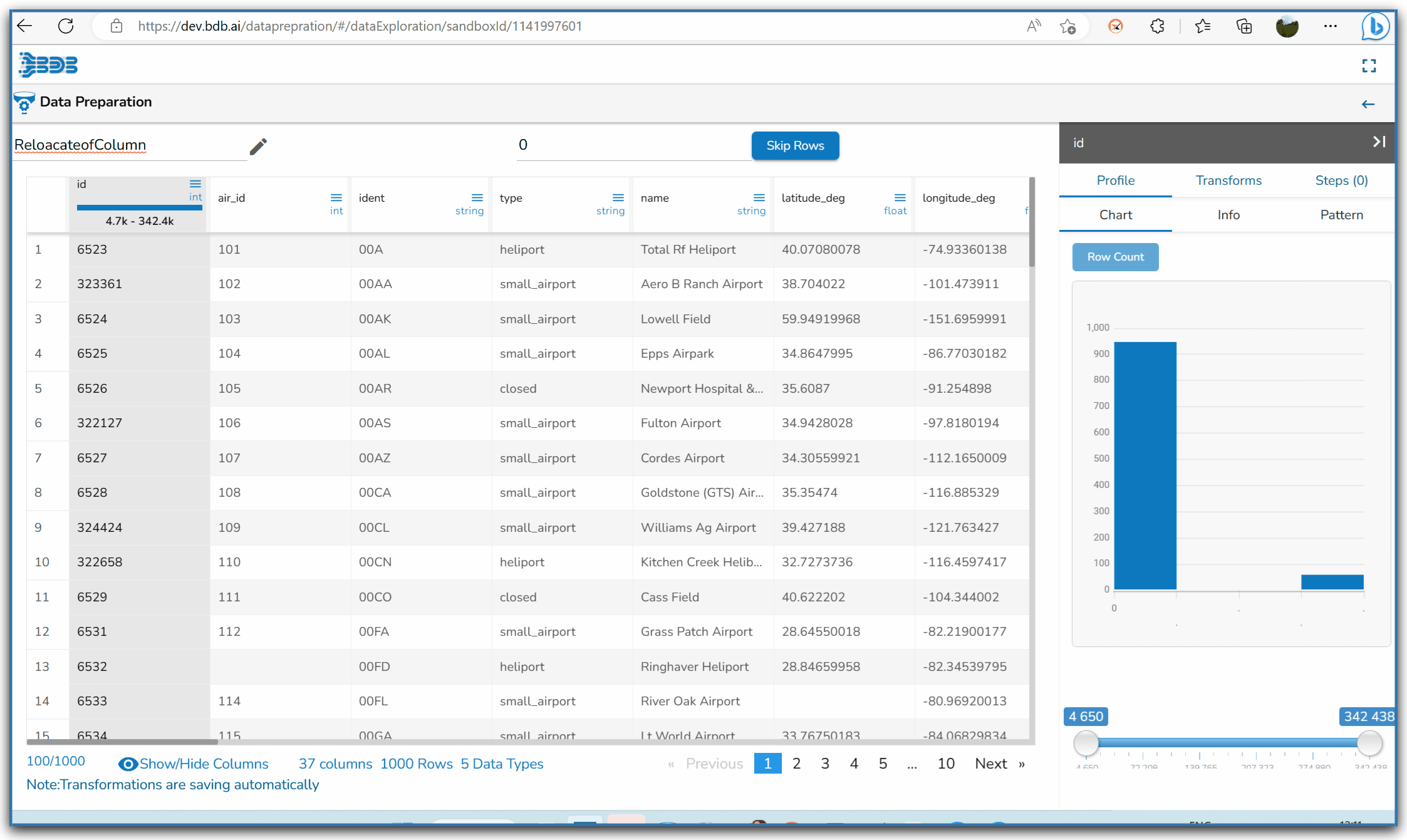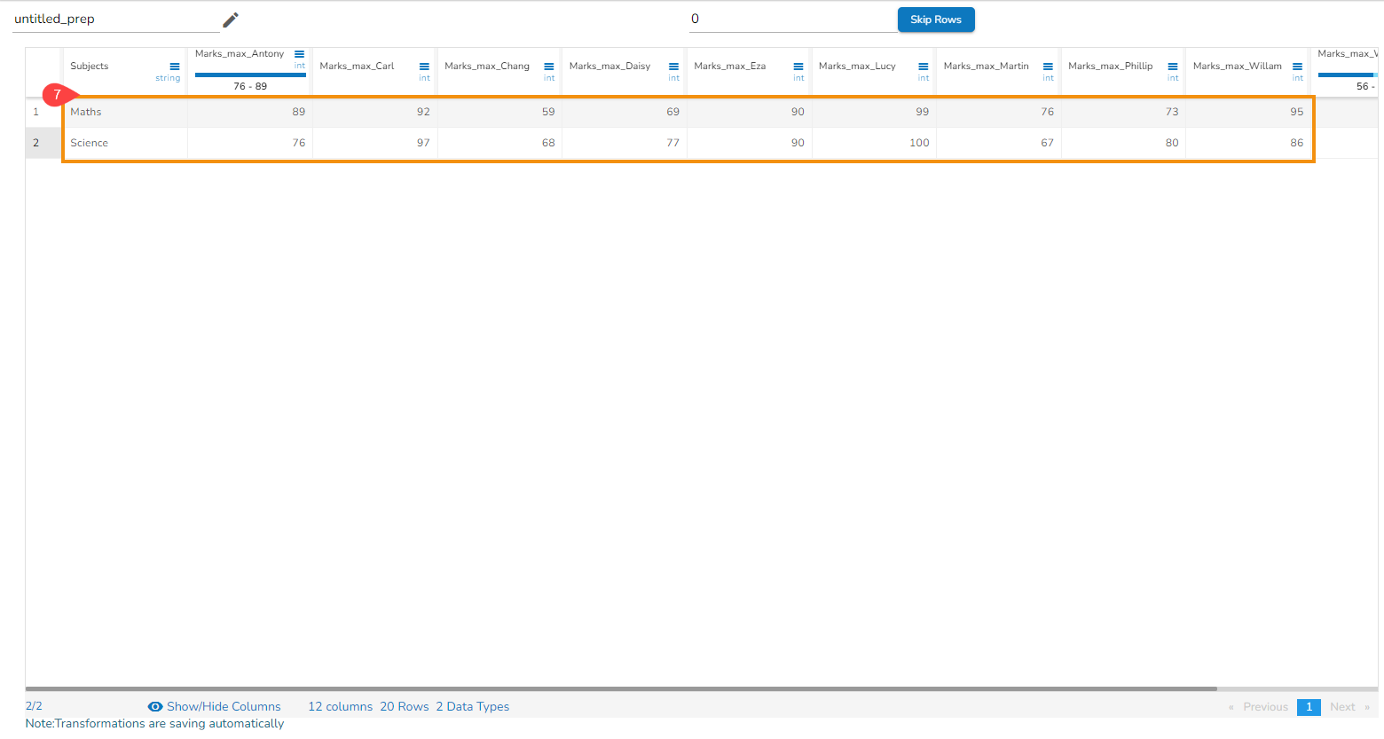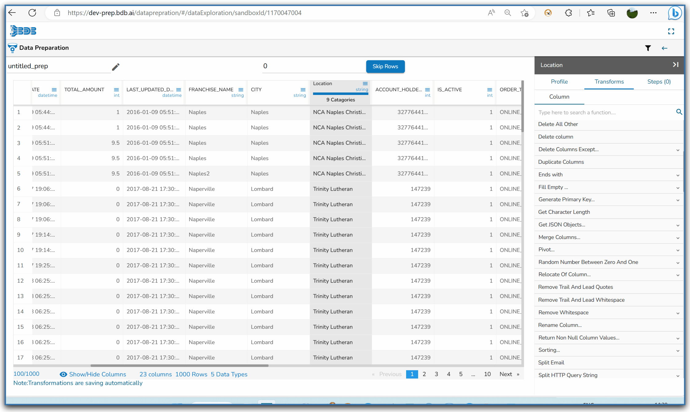 *<mark style="color:green;">Please Note:</mark> If the Sorting transform is used multiple time, the dataset will be ordered based on the last selected sorting order.*&#x20;
