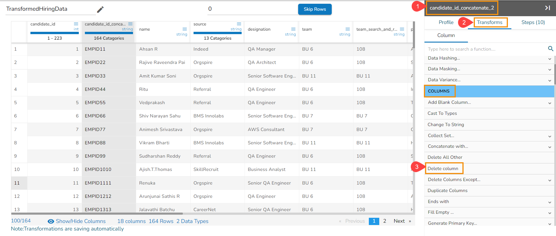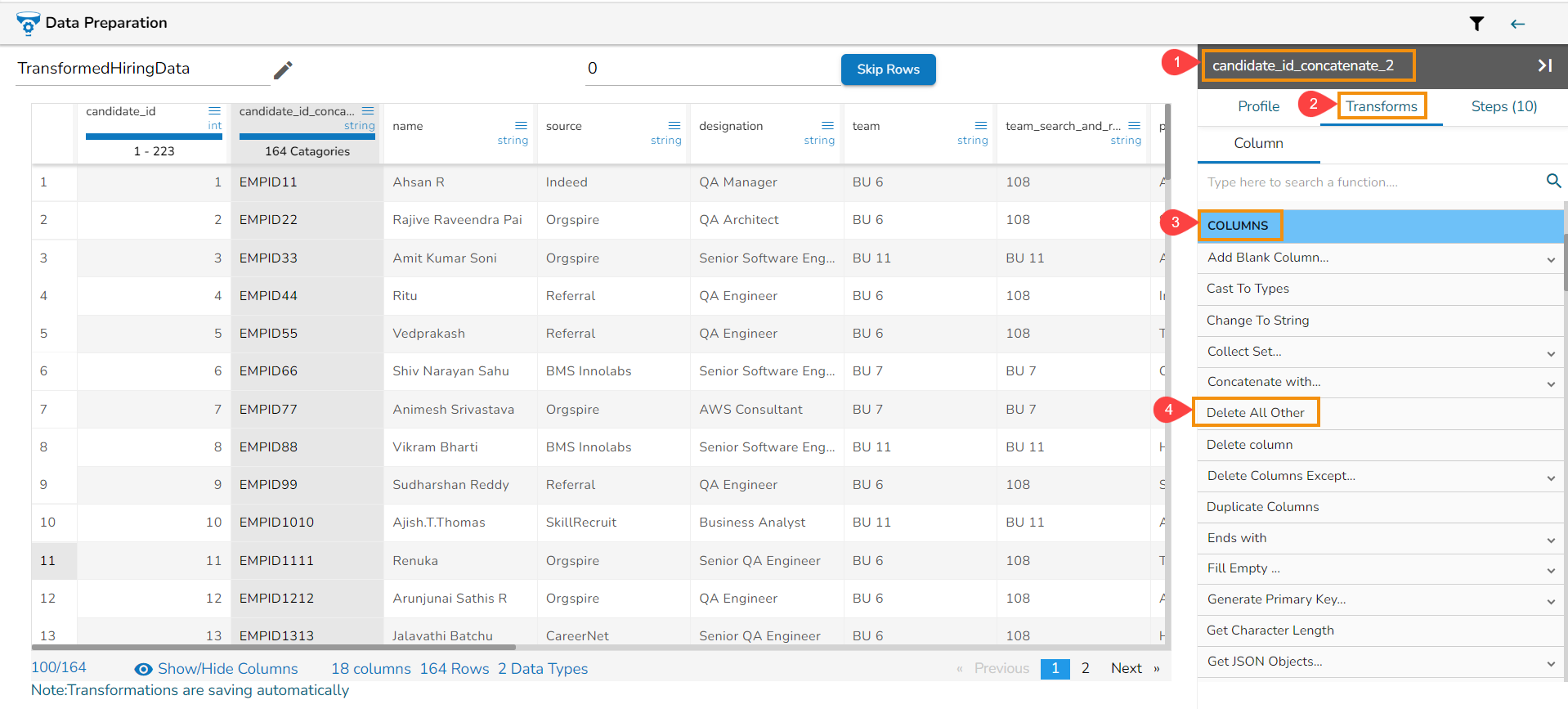 Pay Attention: The ***Delete Columns Except*** transform is renamed as ***Keep Column***.&#x20;
