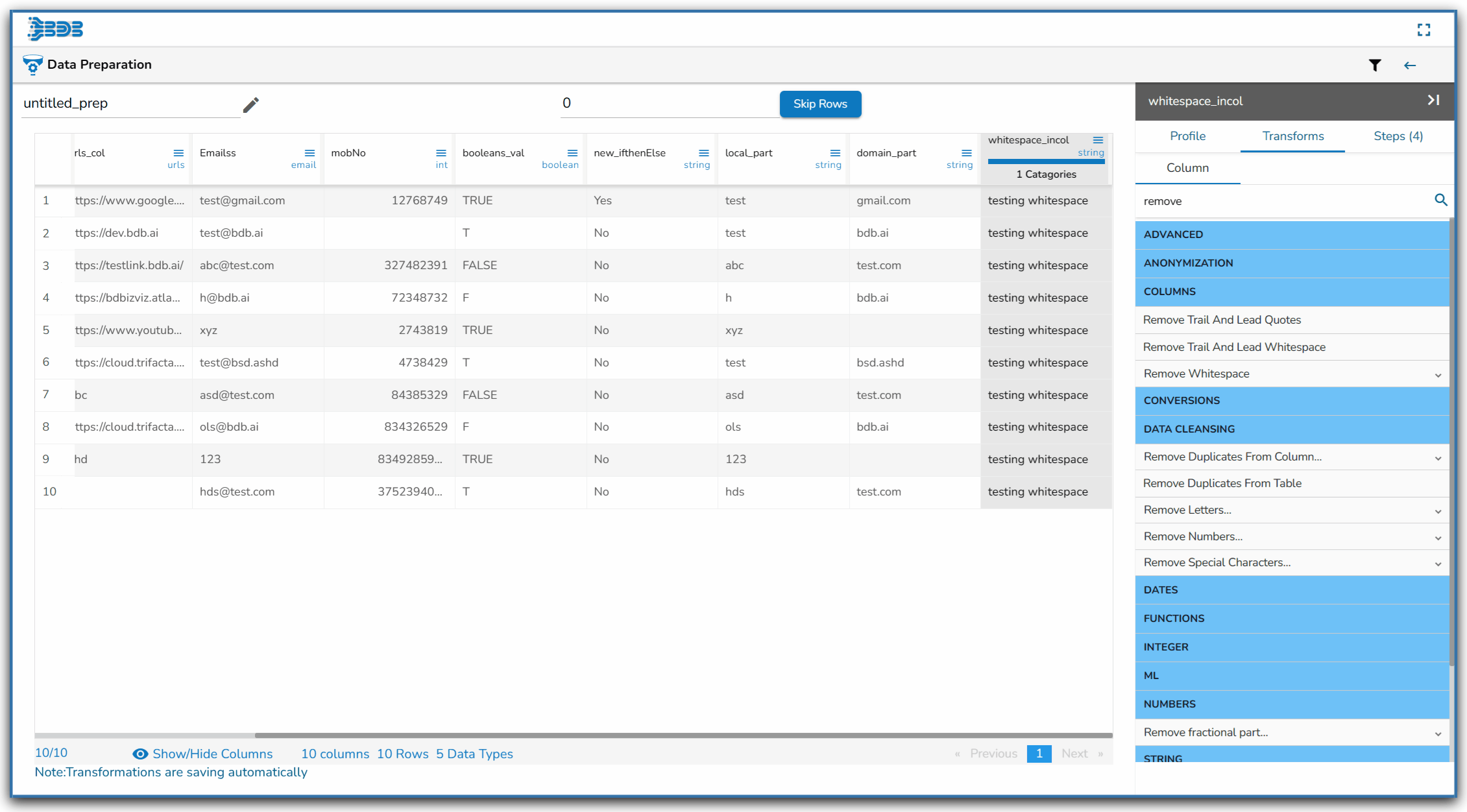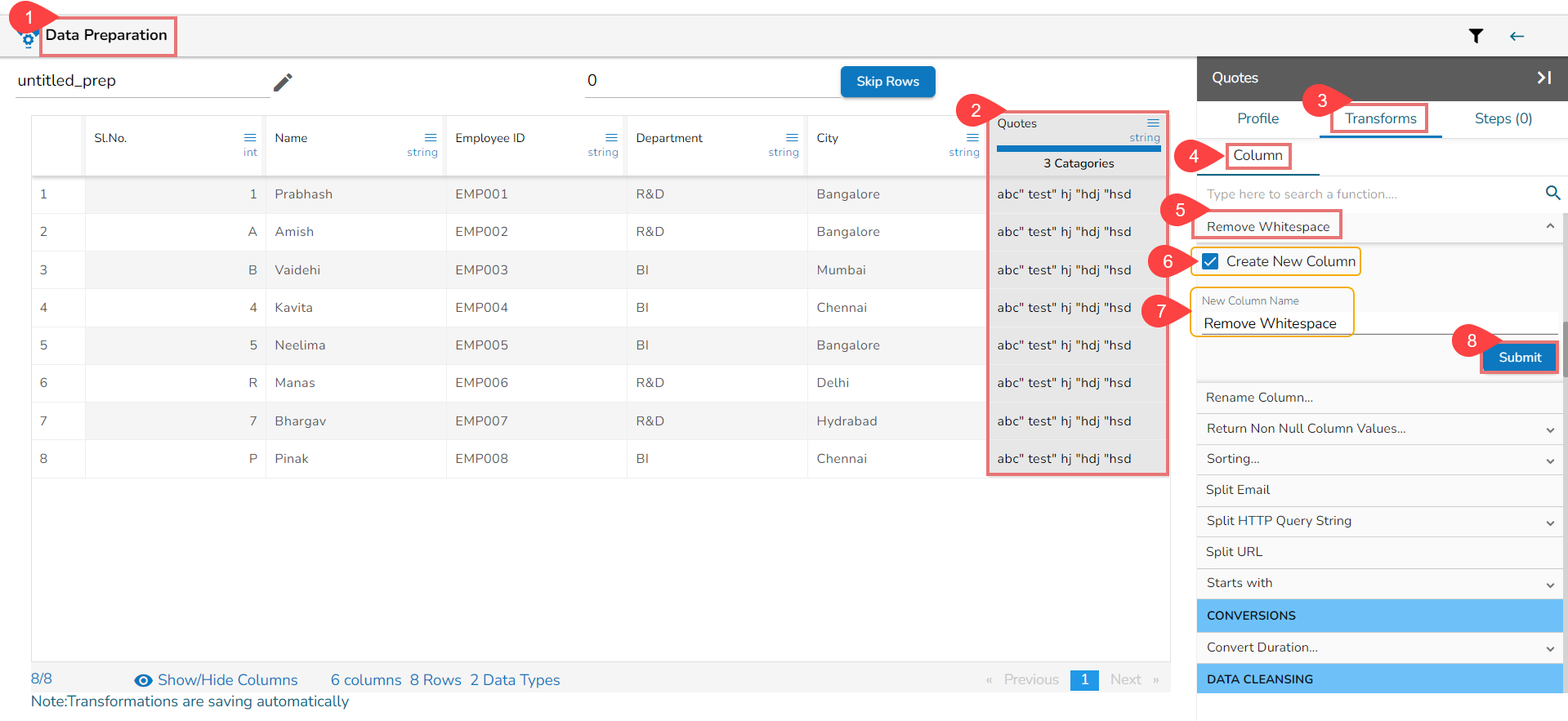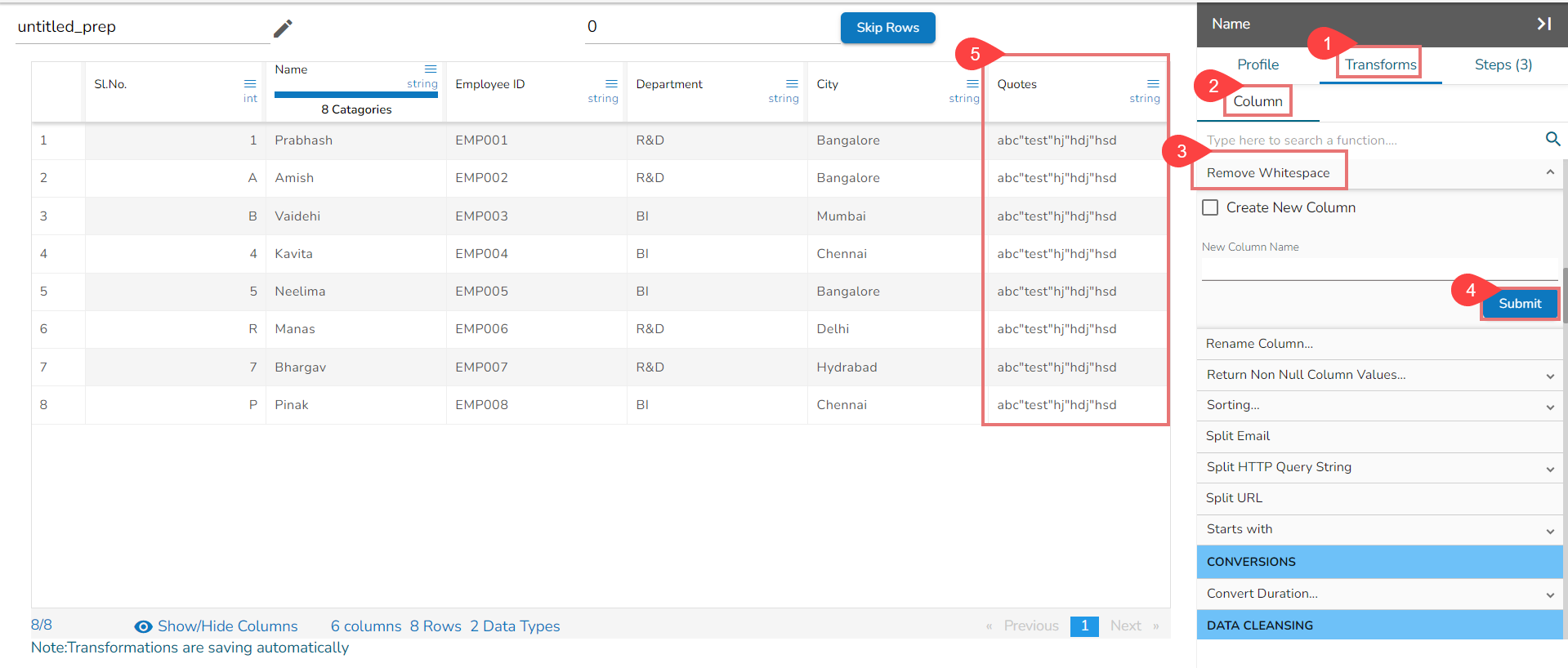 The users can avoid creating a new column while using the ***Remove Whitespace*** transform in that case, the whitespaces will get removed from the source column itself.