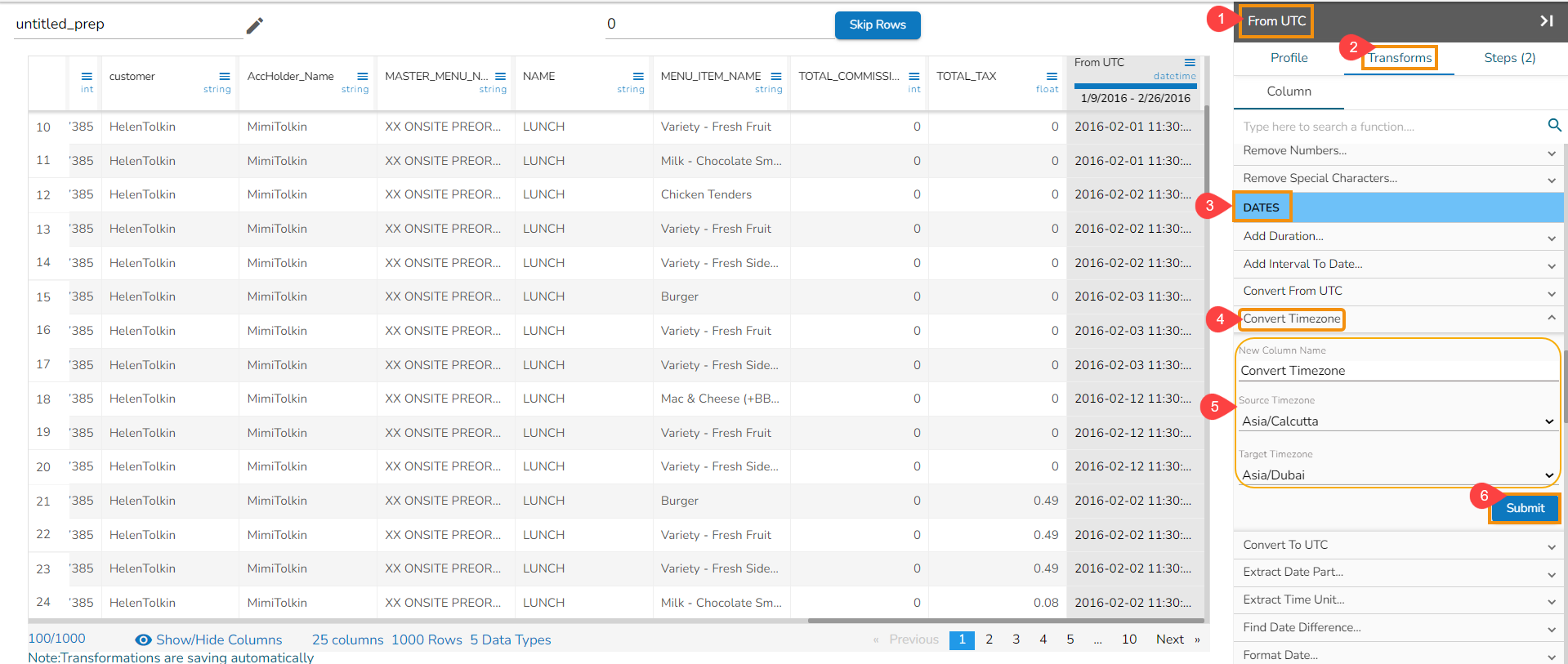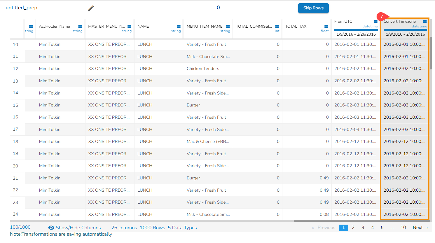 Select the Convert Timezone transform.