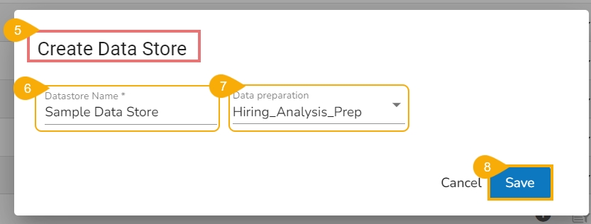Select preparations from the Data Preparation drop-down if the sandbox has any preparations (This field appears only when the selected Sandbox file contains at least one saved Data Preparation in it.