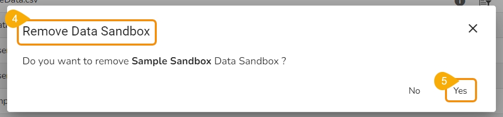 The Remove Data Sandbox dialog box opens to confirm the deletion.