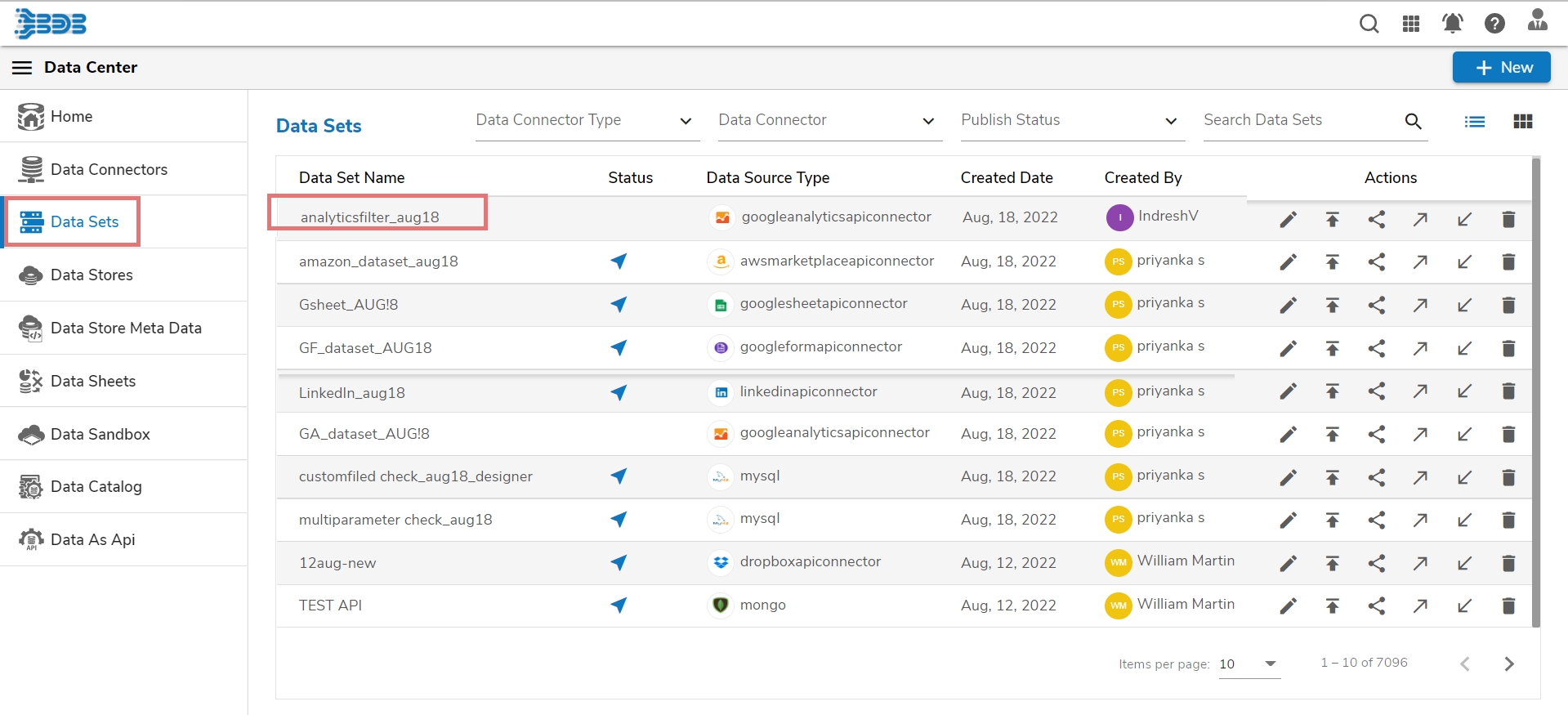 A success message appears, and the newly created Google Analytics dataset gets added to the Data Sets list.