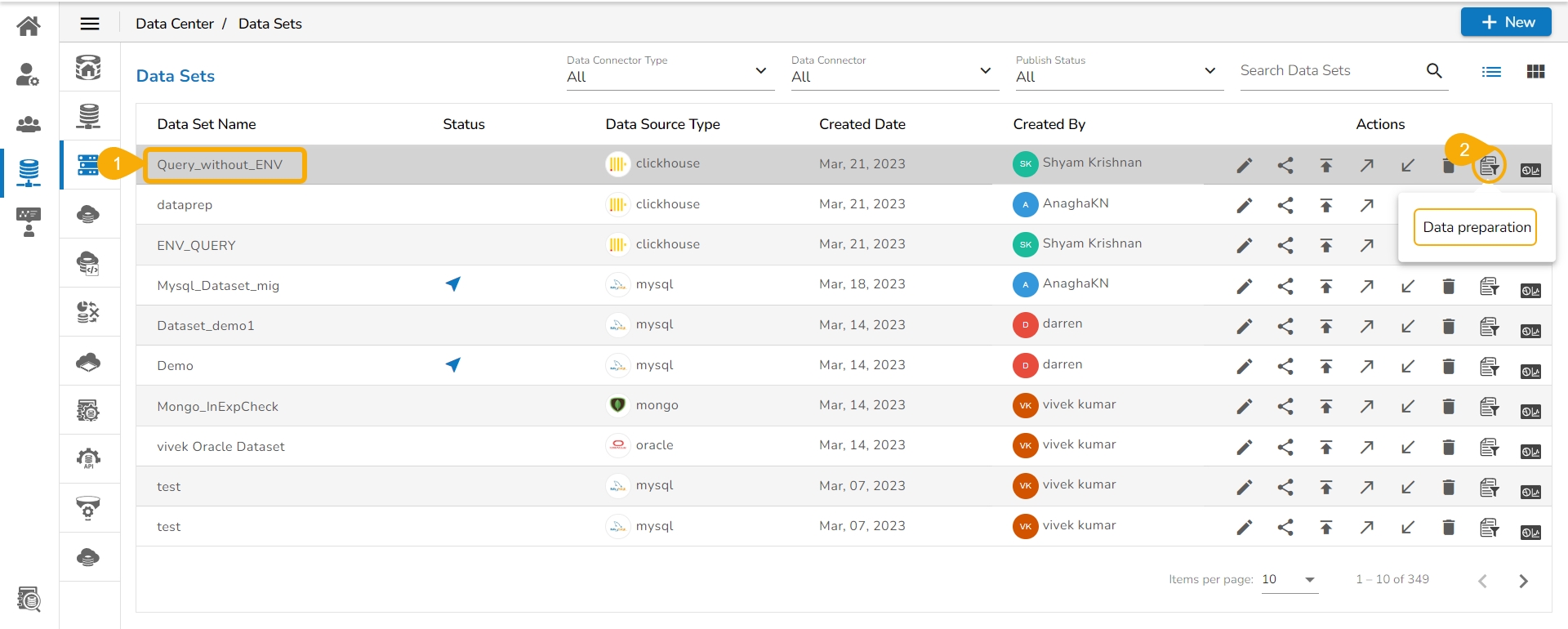 Click the Data Preparation icon for that Data Set.