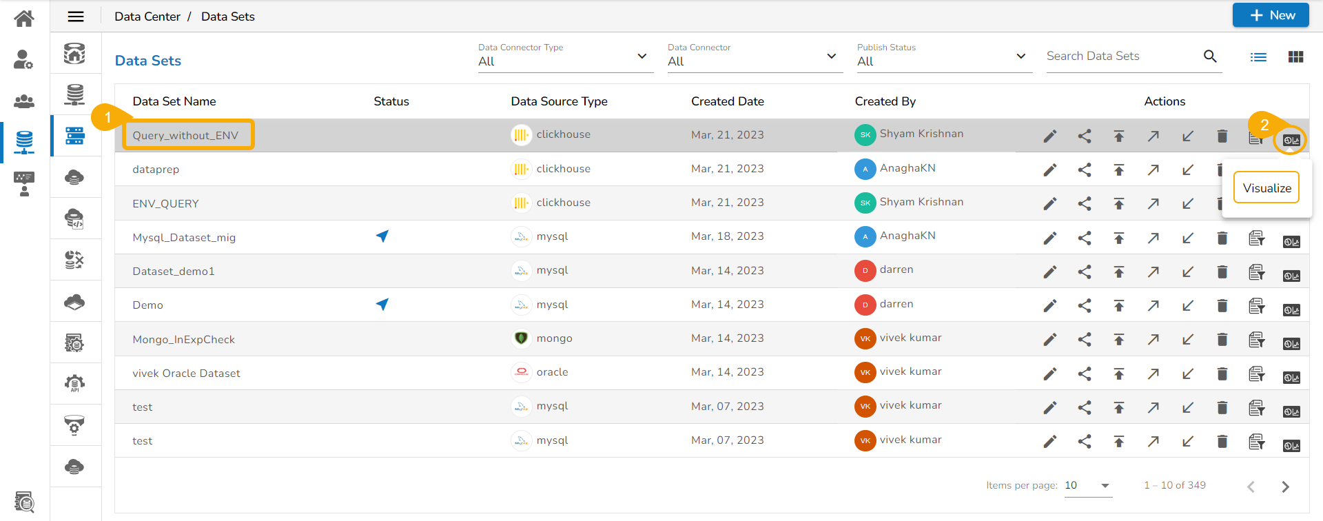 The saved widget can be seen in the drop-down while opening the Widget Visualizer next time for the same Data Set.