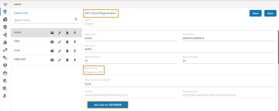 The saved Widget can be also shared as APIs. The saved widgets will appear under the API Client Registration as Widget as API under the Select API Type drop-down option.