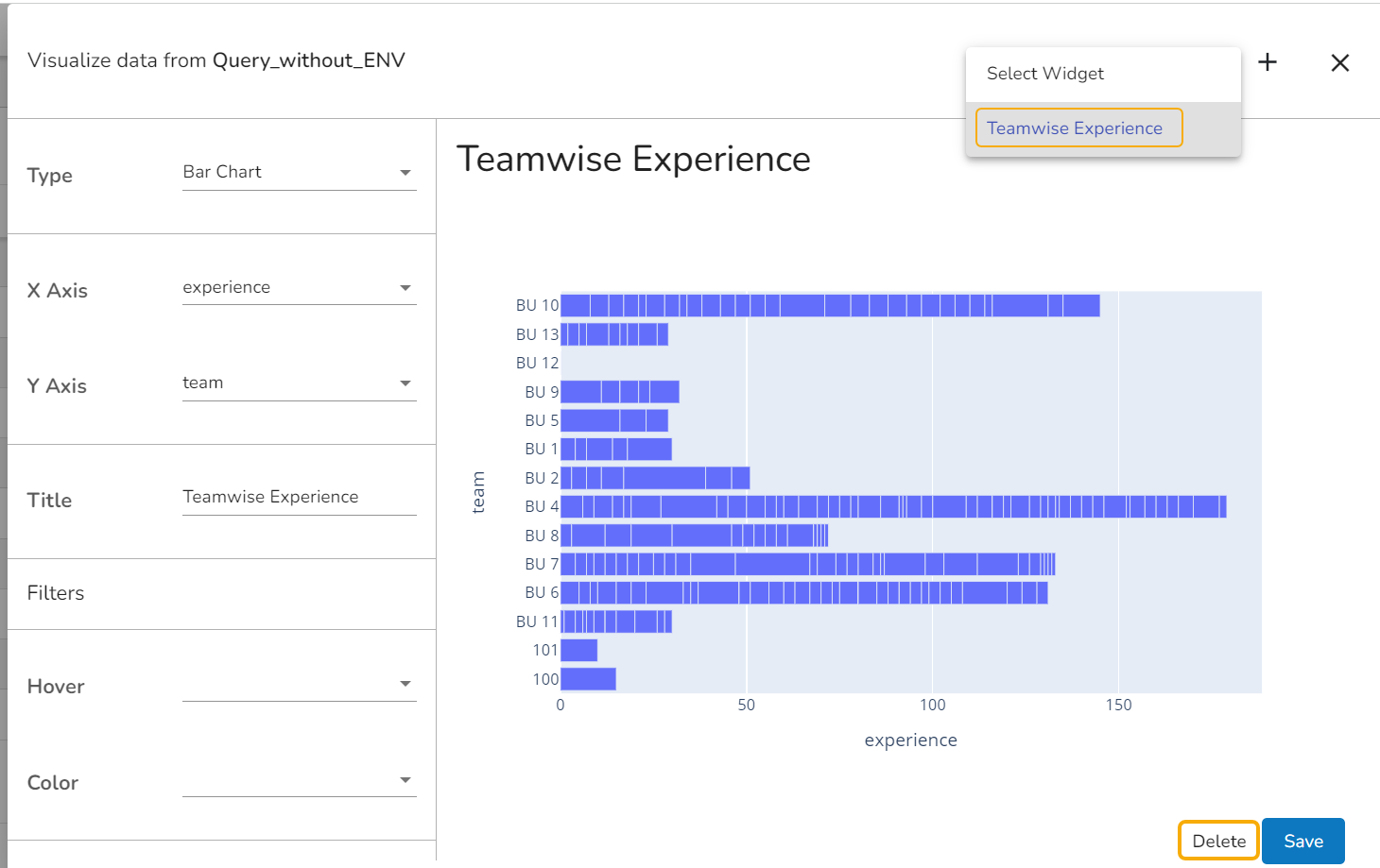 The Delete option provided on the Widget page helps the user to Delete a Widget (including a saved Widget as well).