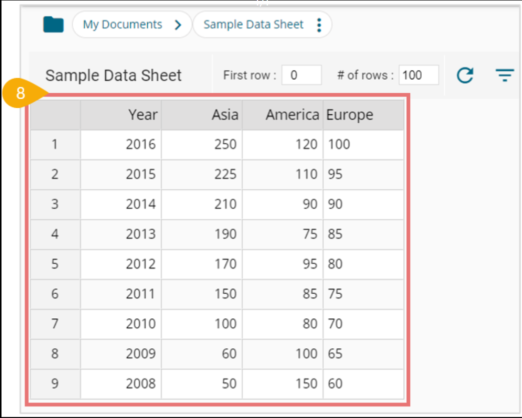 * The Data Sheet opens displaying the data table.