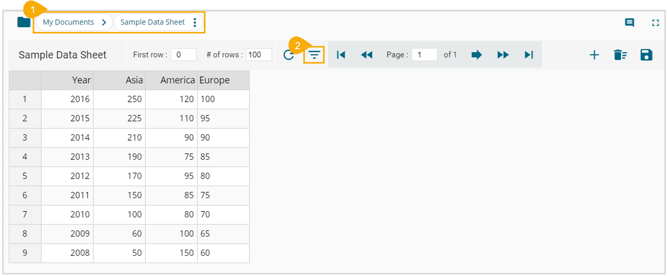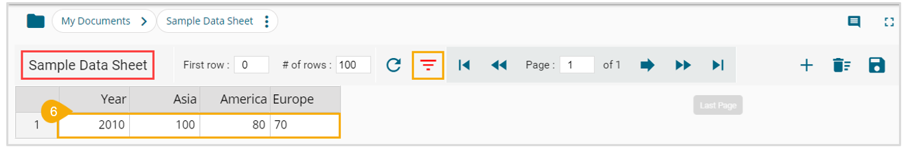 * The displayed data gets filtered as per the inserted condition (The filter icon turns red to indicate that the displayed data is filtered).