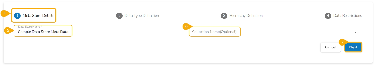 The Data Store Metadata can be created by mapping it with an existing collection. In this case, it will display the data of the mapped collection.