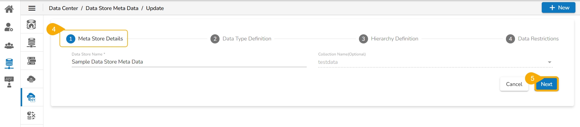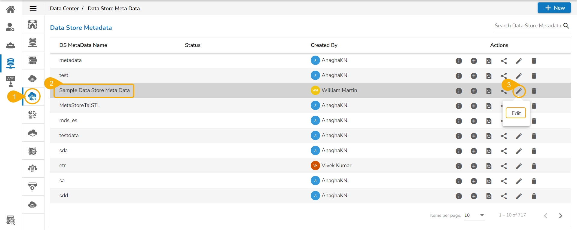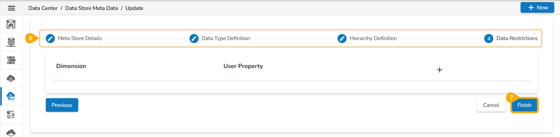 Make sure you have edited the required information using all the tabs provided for the Data Store Meta Data.
