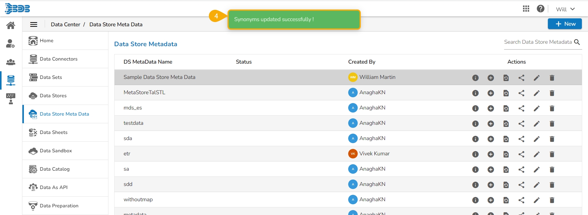 A confirmation message appears to inform the users that the Synonyms are updated.