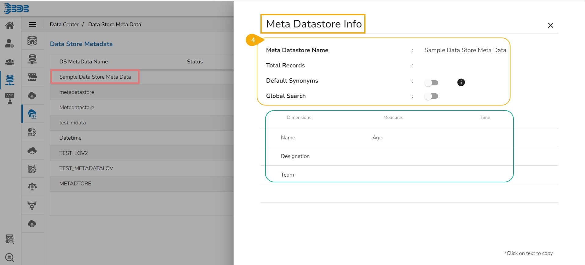 Global Search: Enabling this option allows the user to access the concerned Data Store while using the Global Search.