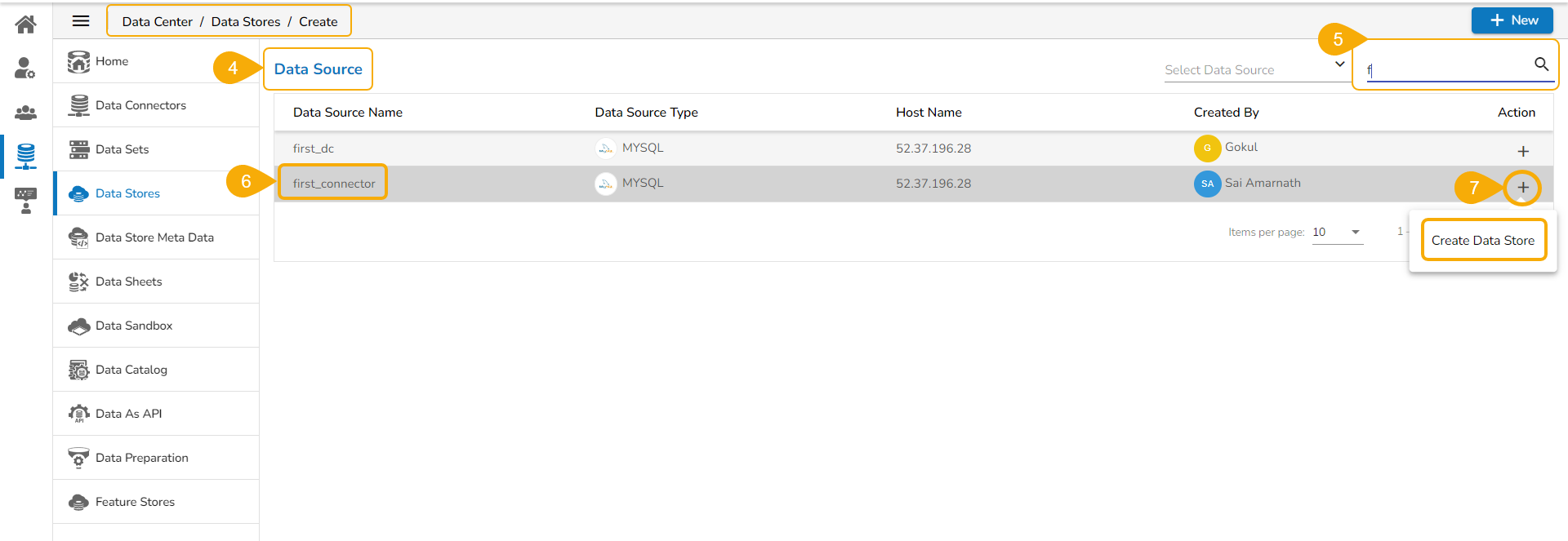 The user can create Data Stores based on various available Data Connectors from the Data Connectors list page or the Data Source page.