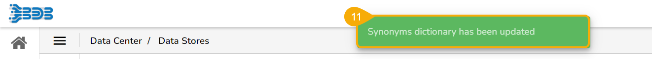 A success message appears to assure that the synonym dictionary is updated with the newly added synonym.