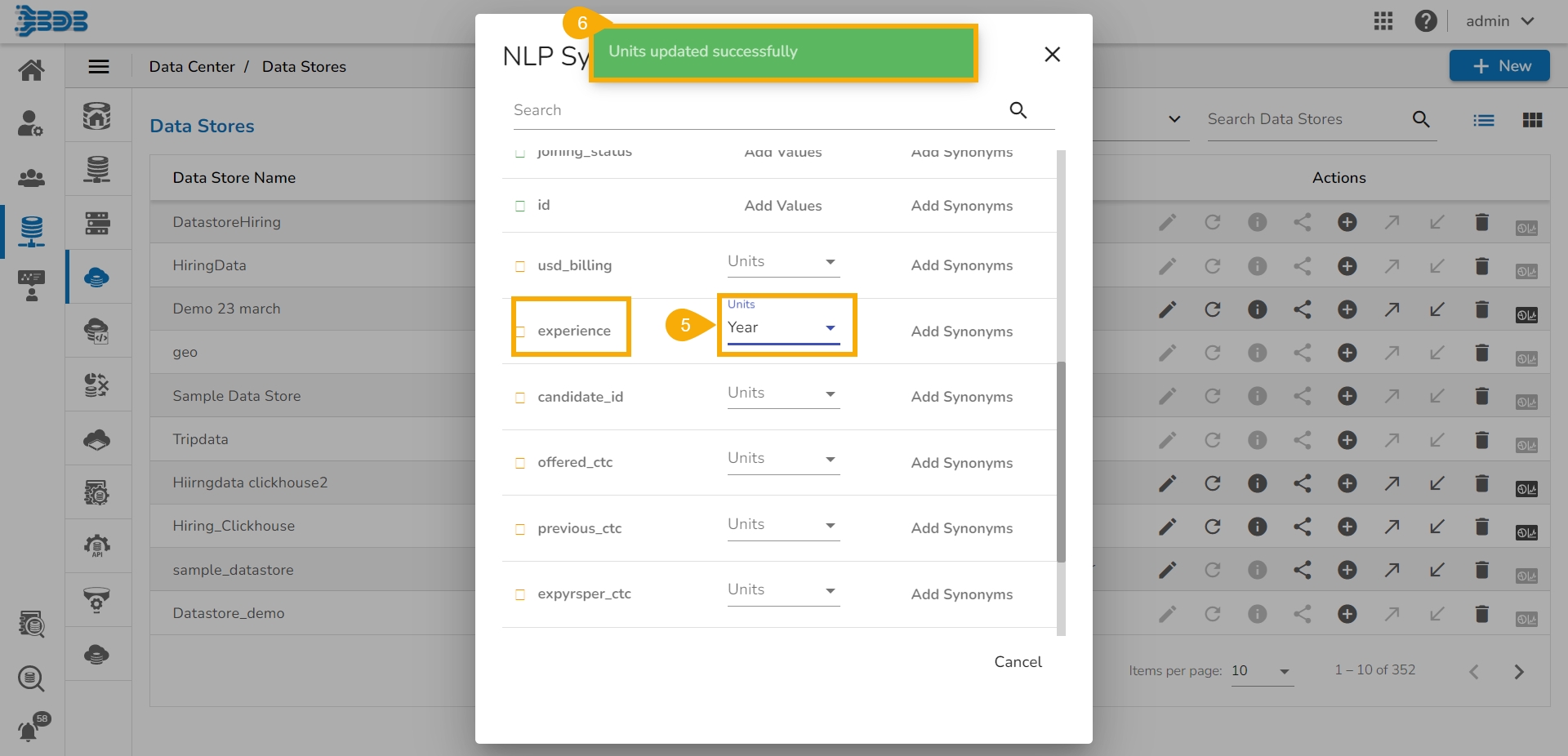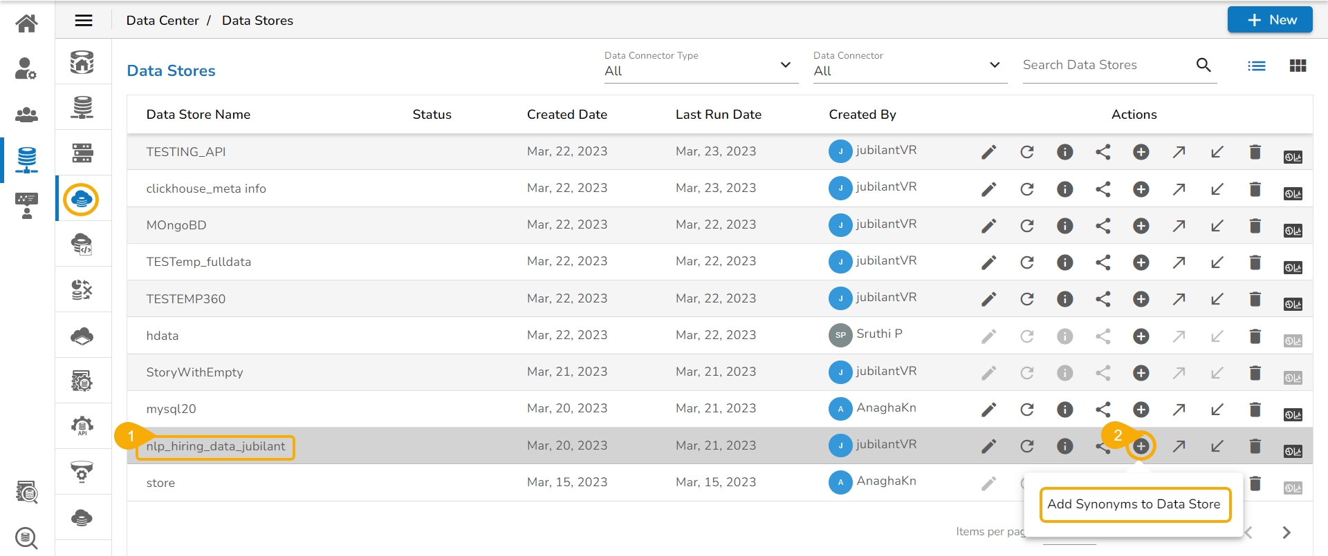 Navigate to the NLP Synonyms window for a data store.