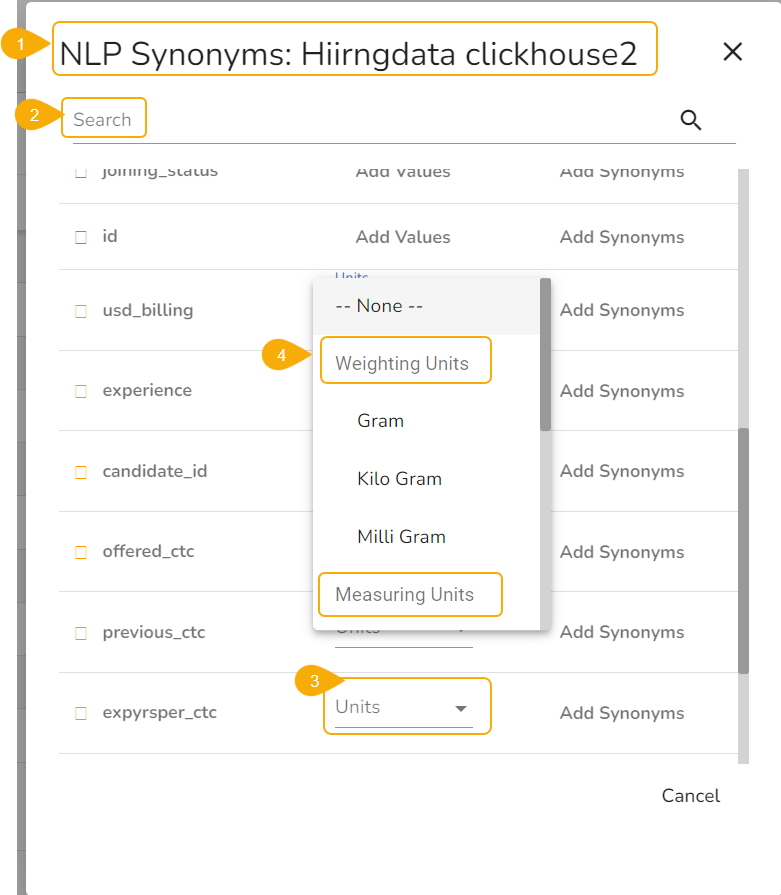 A new window opens to search values for the selected Dimension (E.g., Designation in the below image).