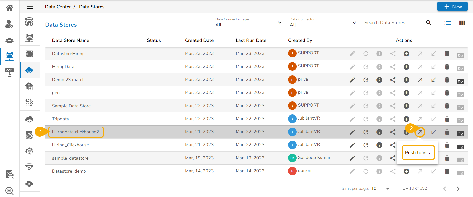 This is the mechanism to versioning the Data Store and this will store the latest versions into the Git. While pulling the Data Store user can see the committed message of each version, so user will get more info about the committed data set.