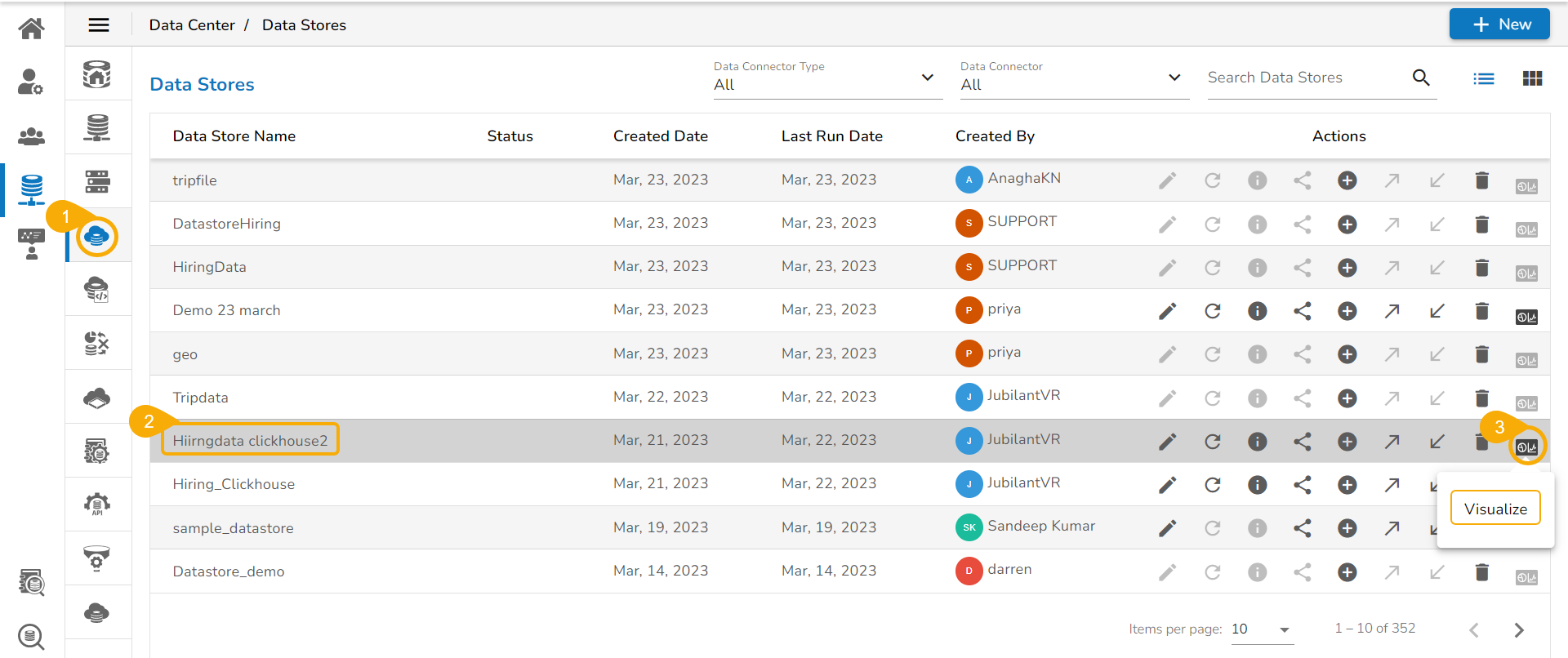 Navigate to the Data Stores list page.