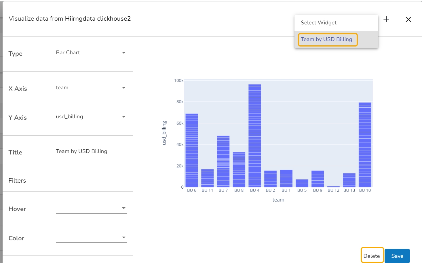 The Delete option provided on the Widget page helps the user to Delete a Widget (including a saved Widget as well).
