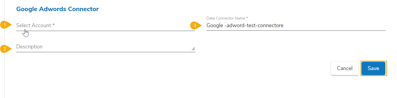 Click the Select Account option from the Google AdWords Connector page.