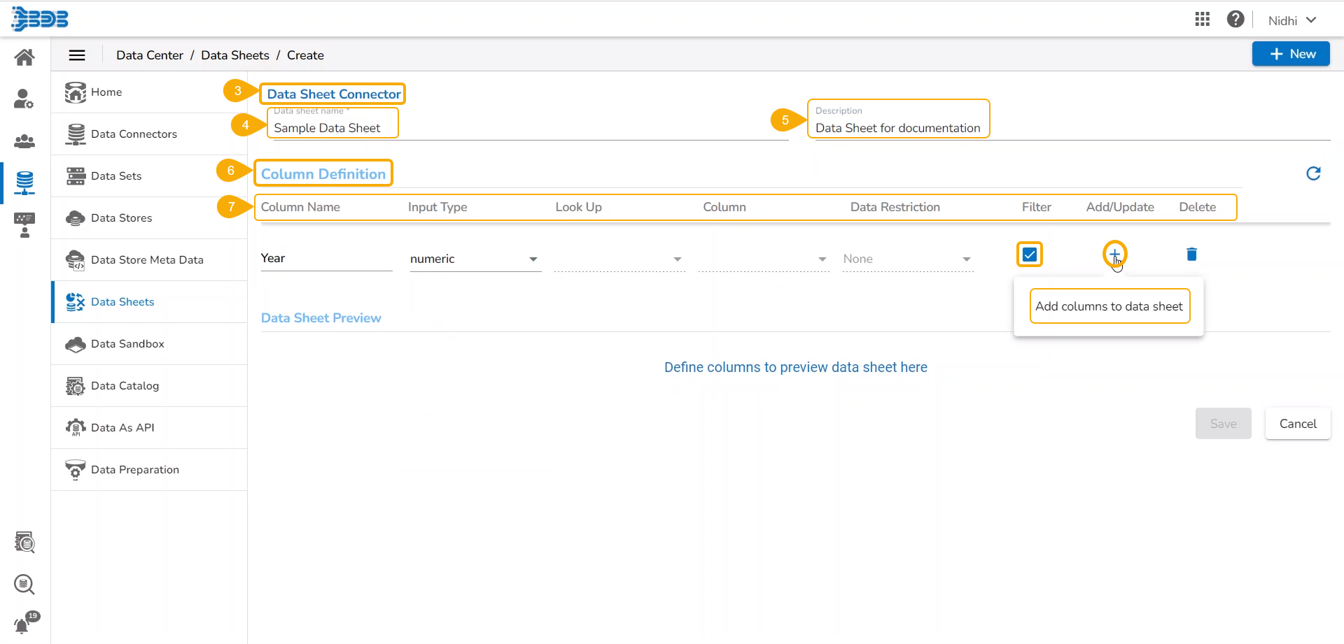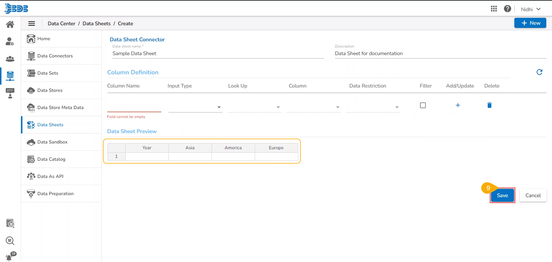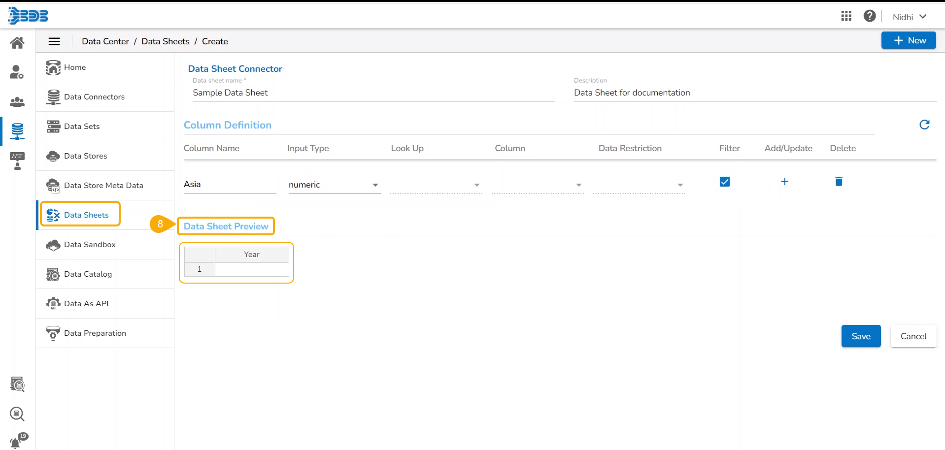 * The ***Save*** option gets enabled which the user can click to save the Data Sheet.