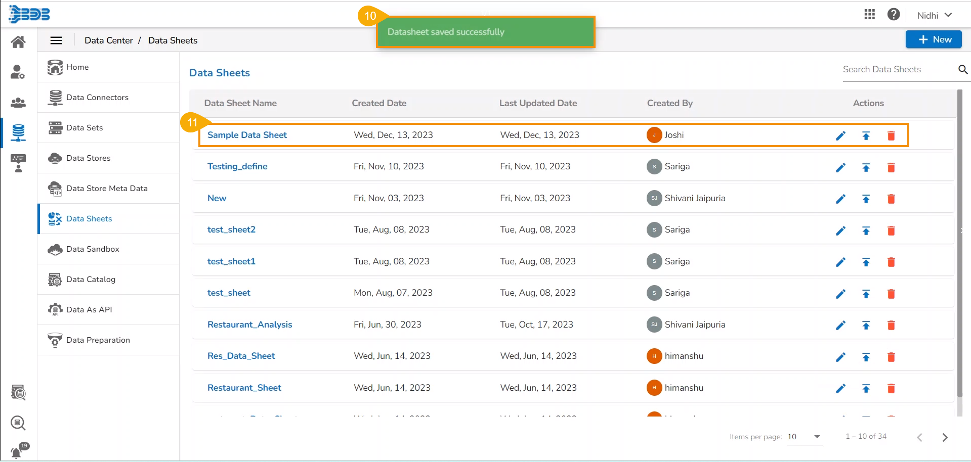 * The newly created Data Sheet gets added to the Data Sheets list.