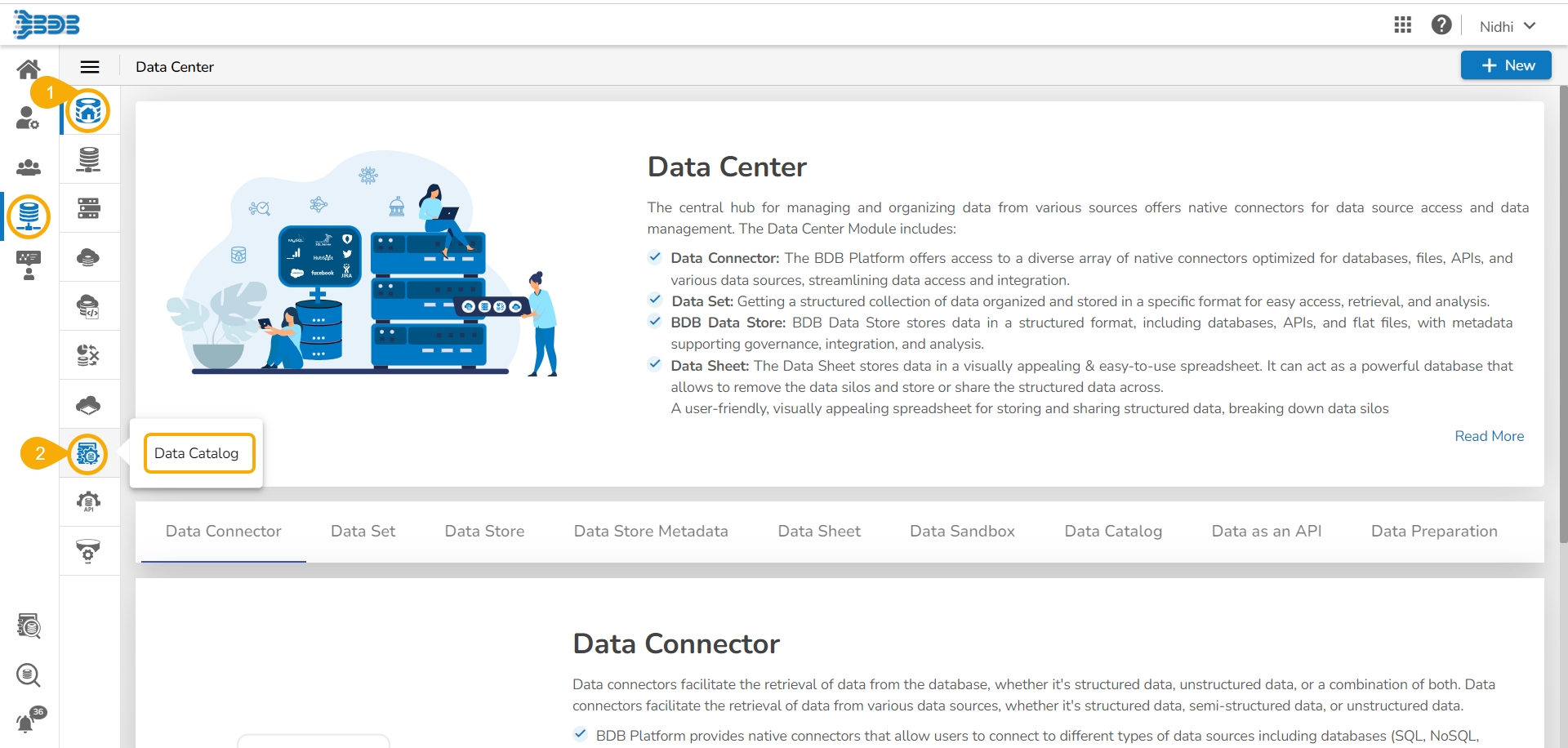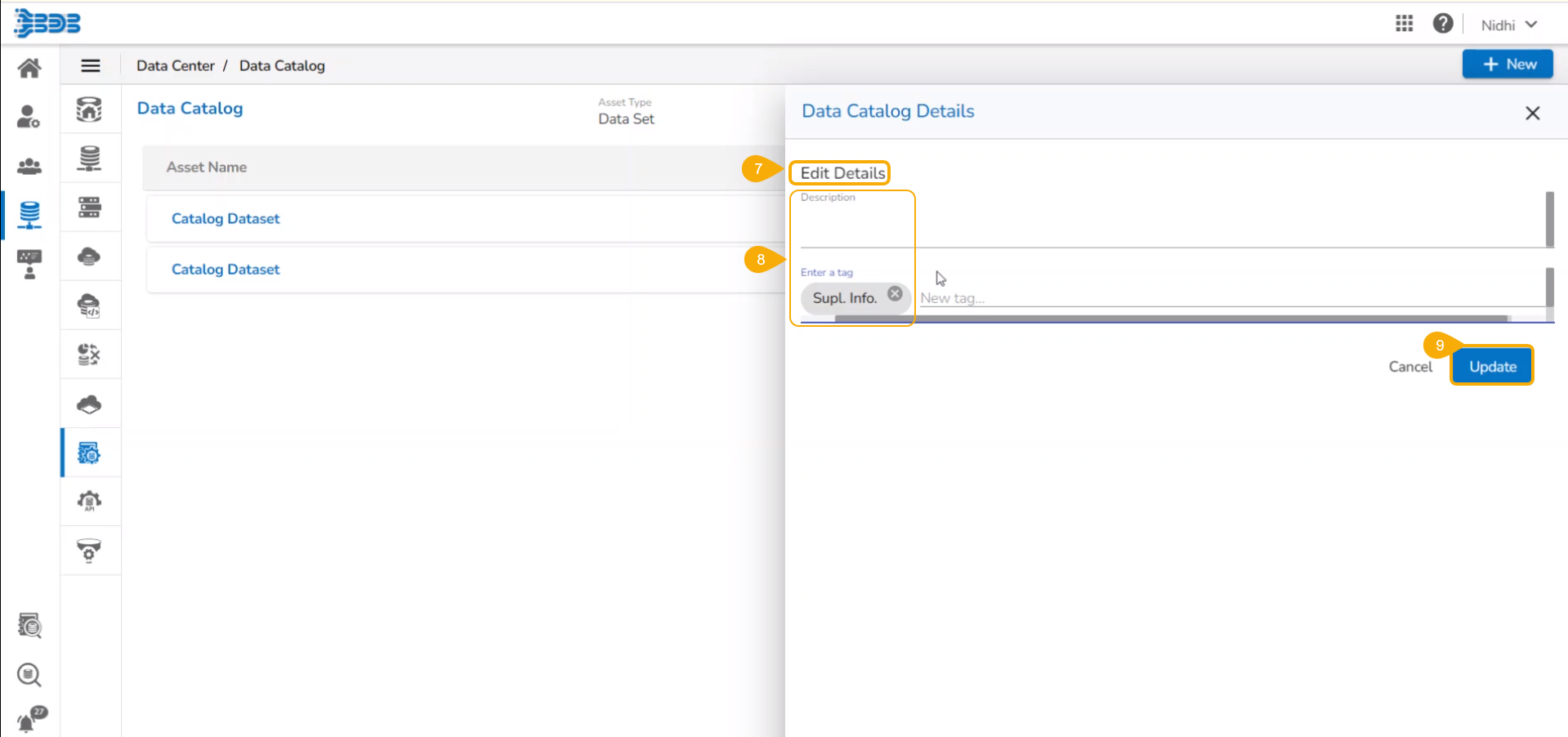 Check out the given walk-through on Data Catalog creation and modification steps using the Data Center module.