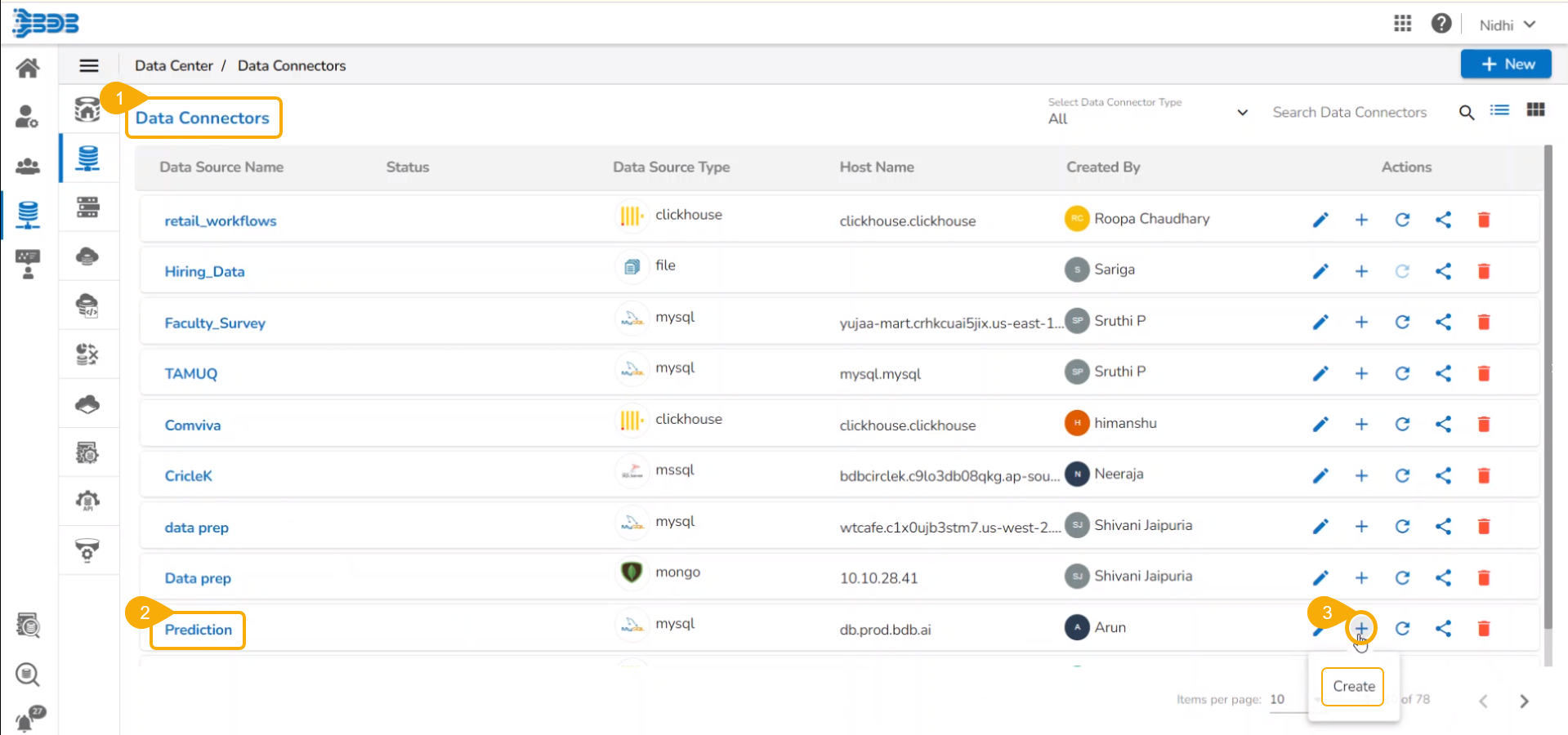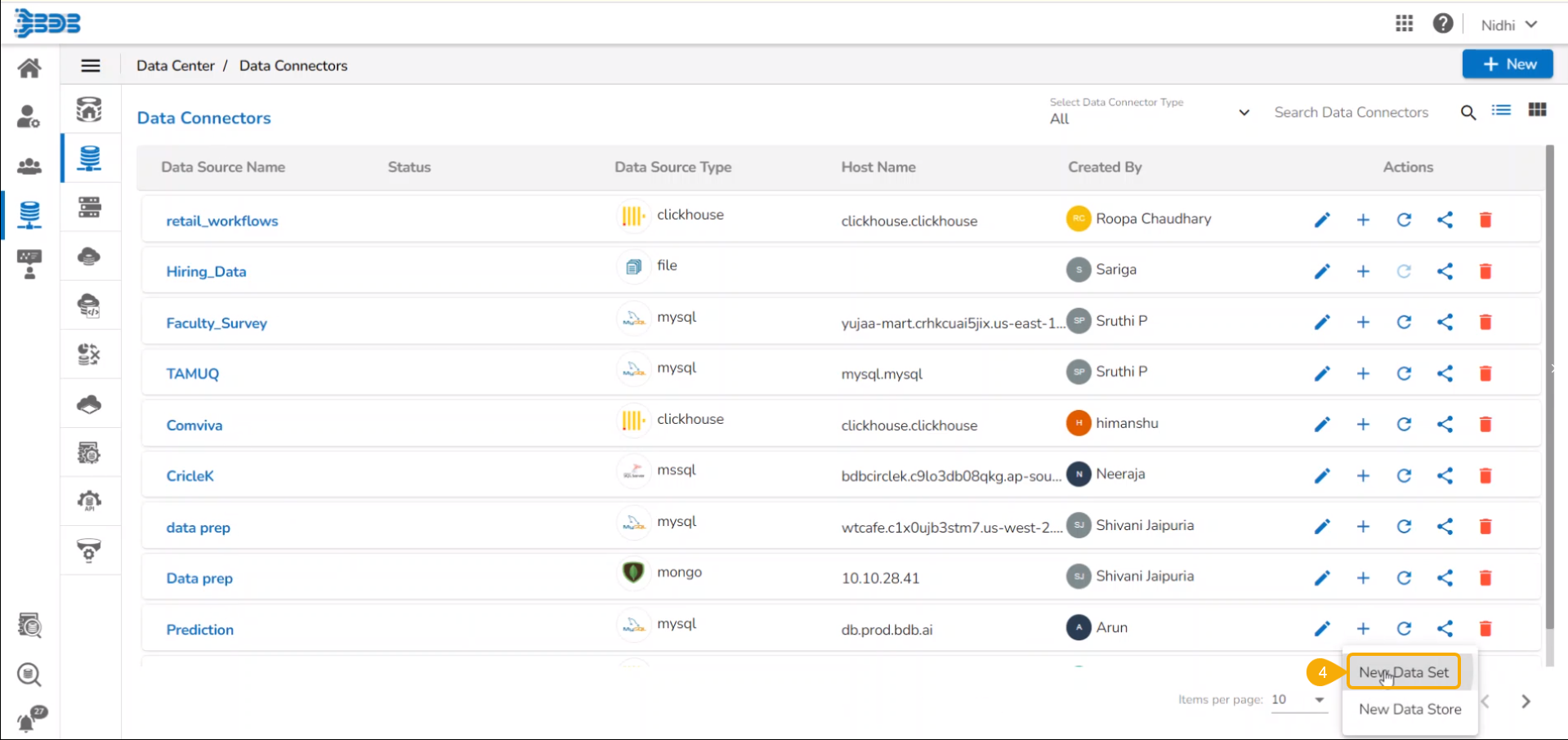 Connector: It will list the connectors created and used for the scenario [MySQL/ MSSQL/ MongoDBBi/ Mongo DB/Oracle/ PostgreSQL]