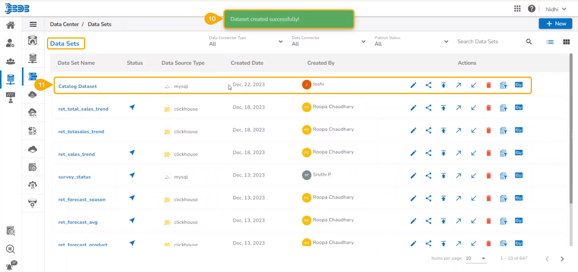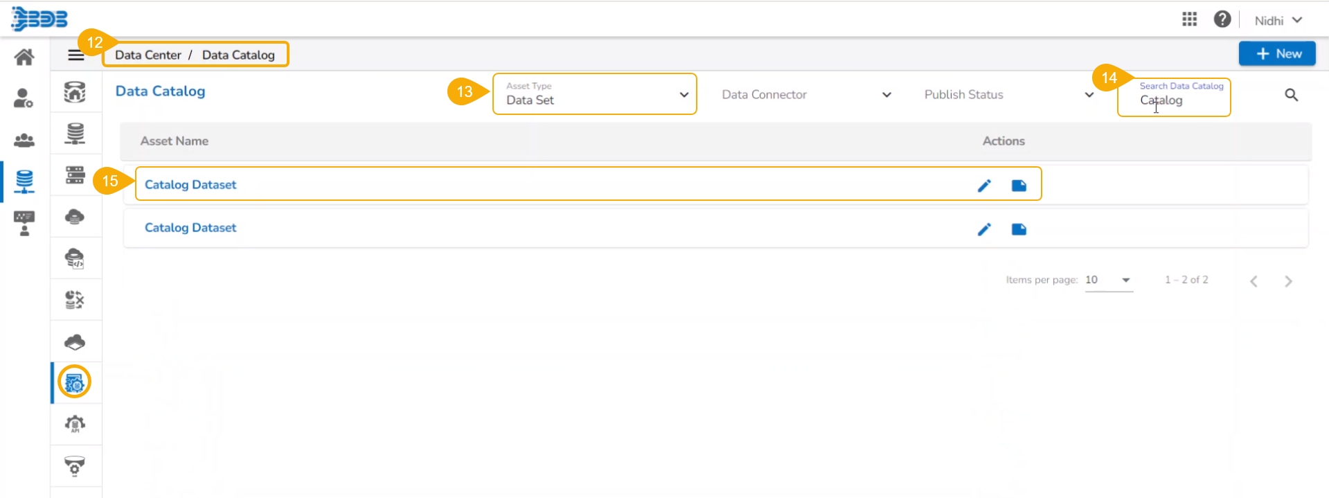 Data Set: It will filter the catalog list by the created data sets based on the variety of data connectors.