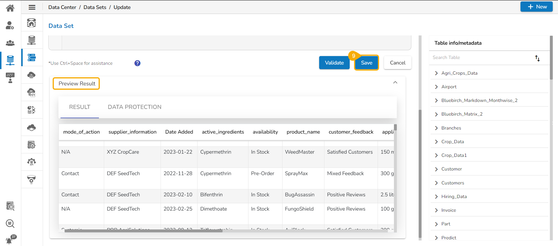 After getting the preview, click the Save option to save the Data Set.