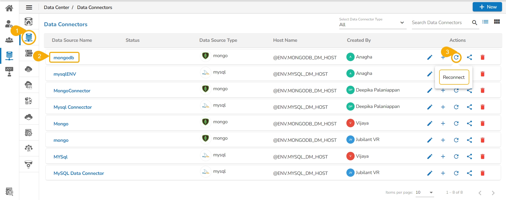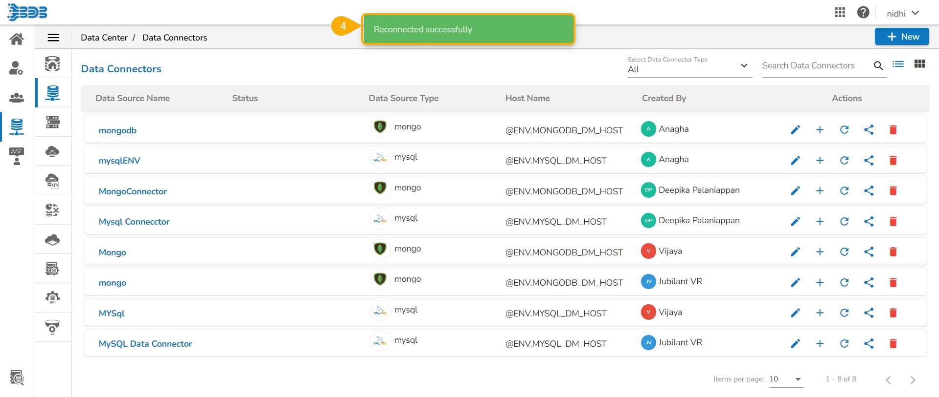 • A confirmation message appears, the selected Data Connector gets reconnected.​