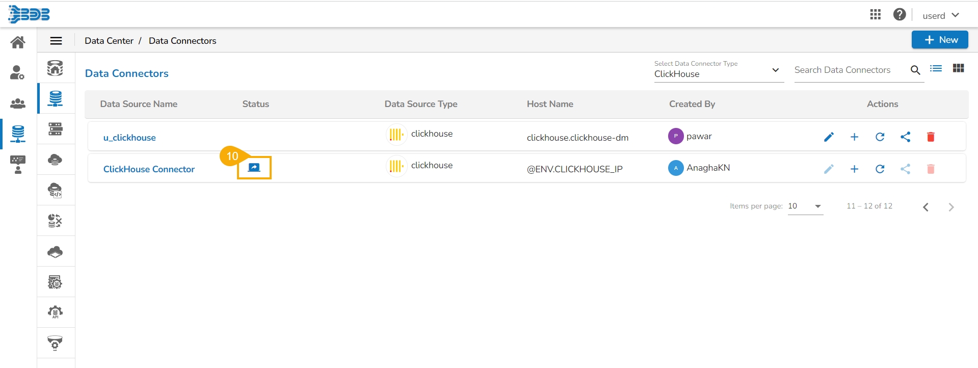 The shared data connector appears with the shared status notification (as displayed in the below given image) in the receiver's user account.