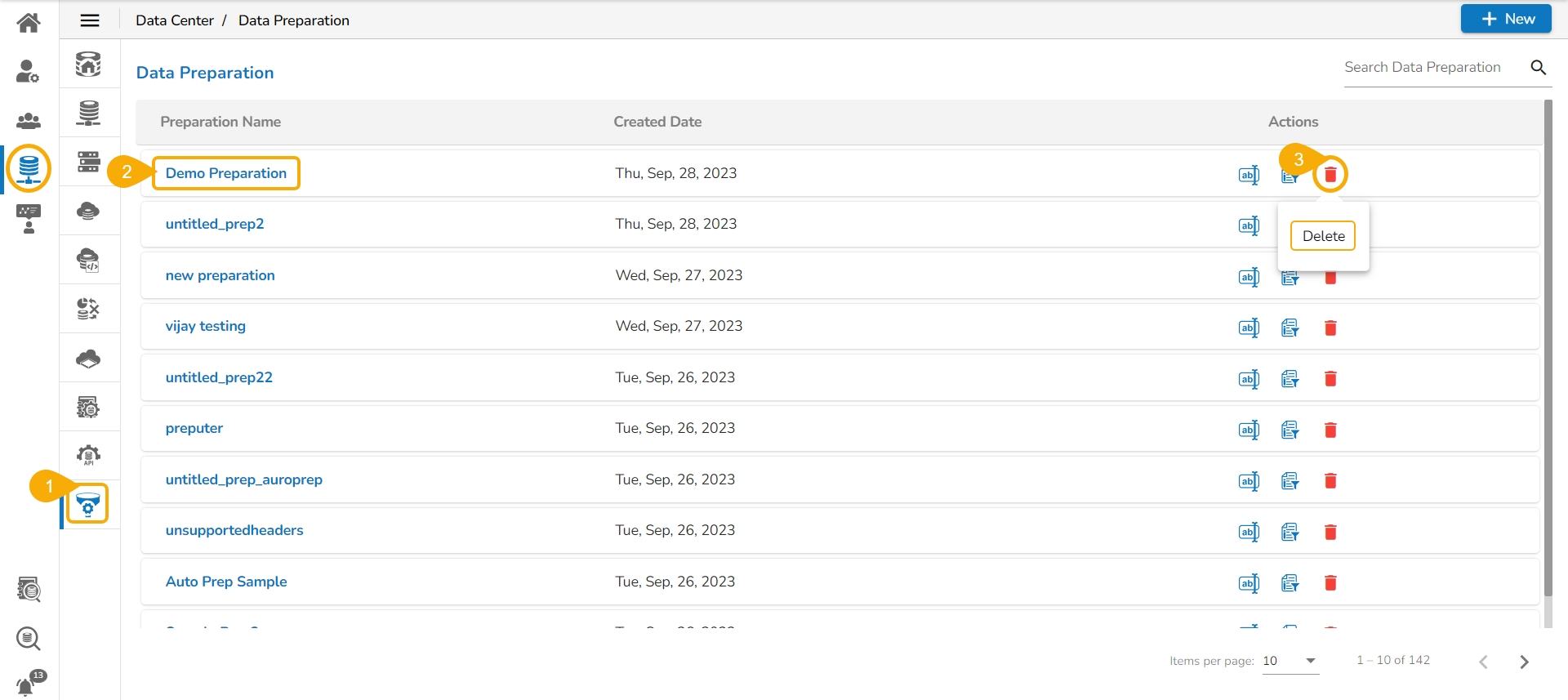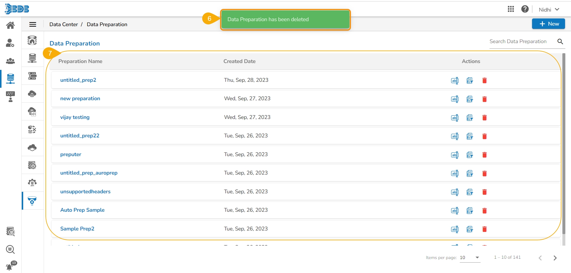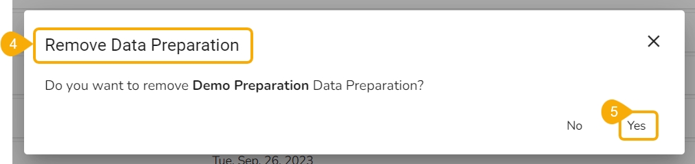 The Remove Data Preparation dialog box appears to confirm the deletion.
