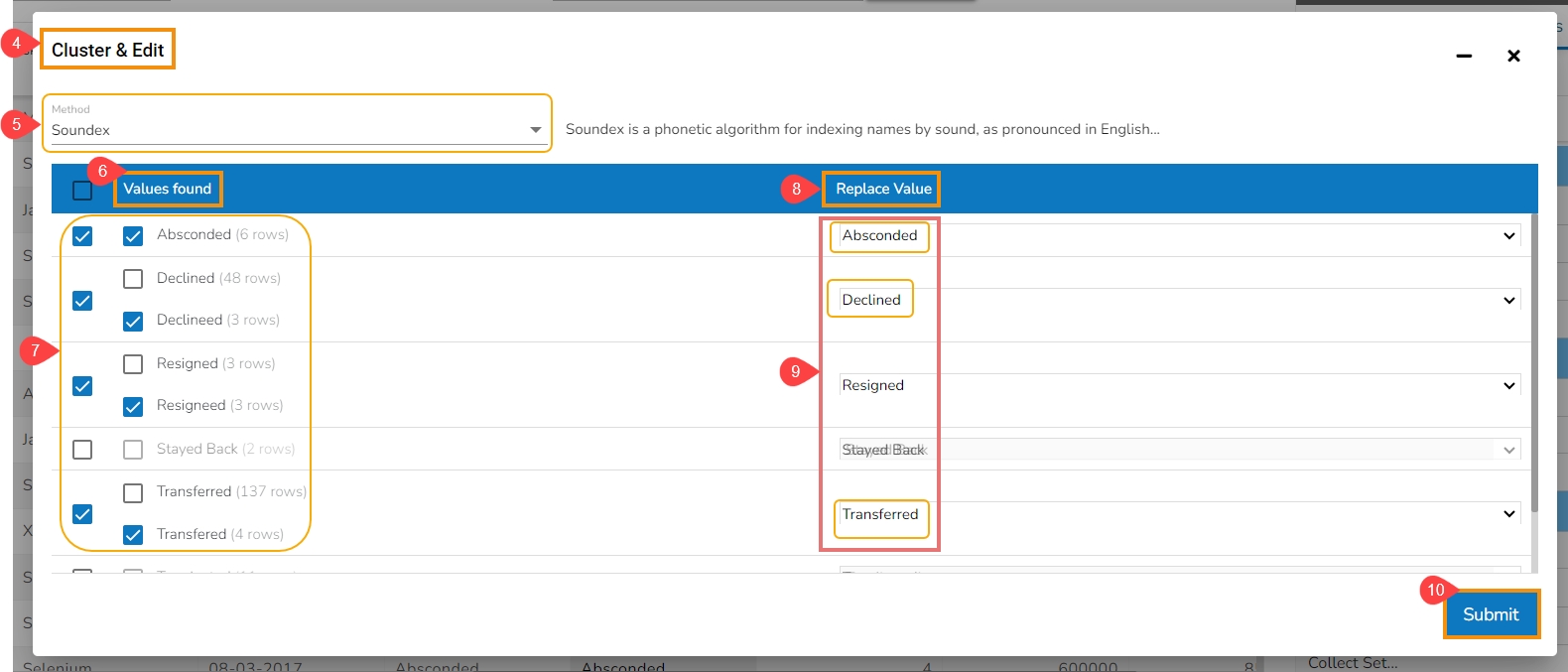 Find out the clusters based on the pronunciation sound and edit the bulk data in a single click.