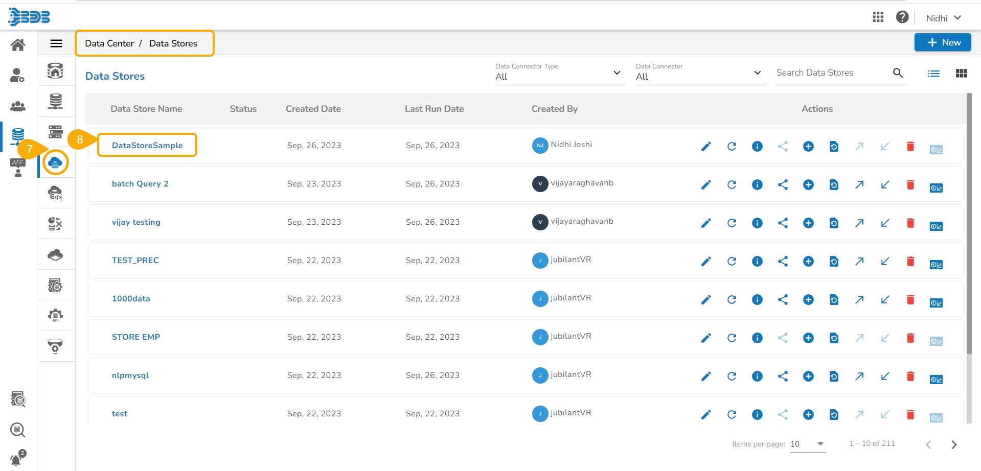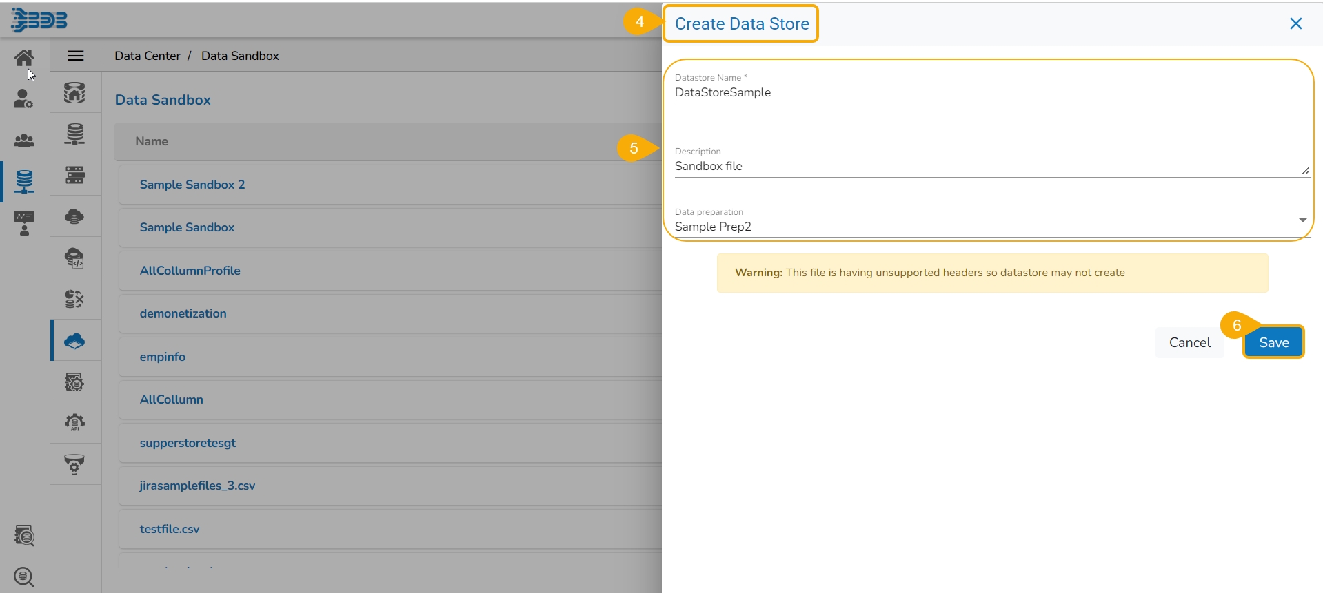 Check out the given walk through on how to create a Data Store based on a Sandbox file.