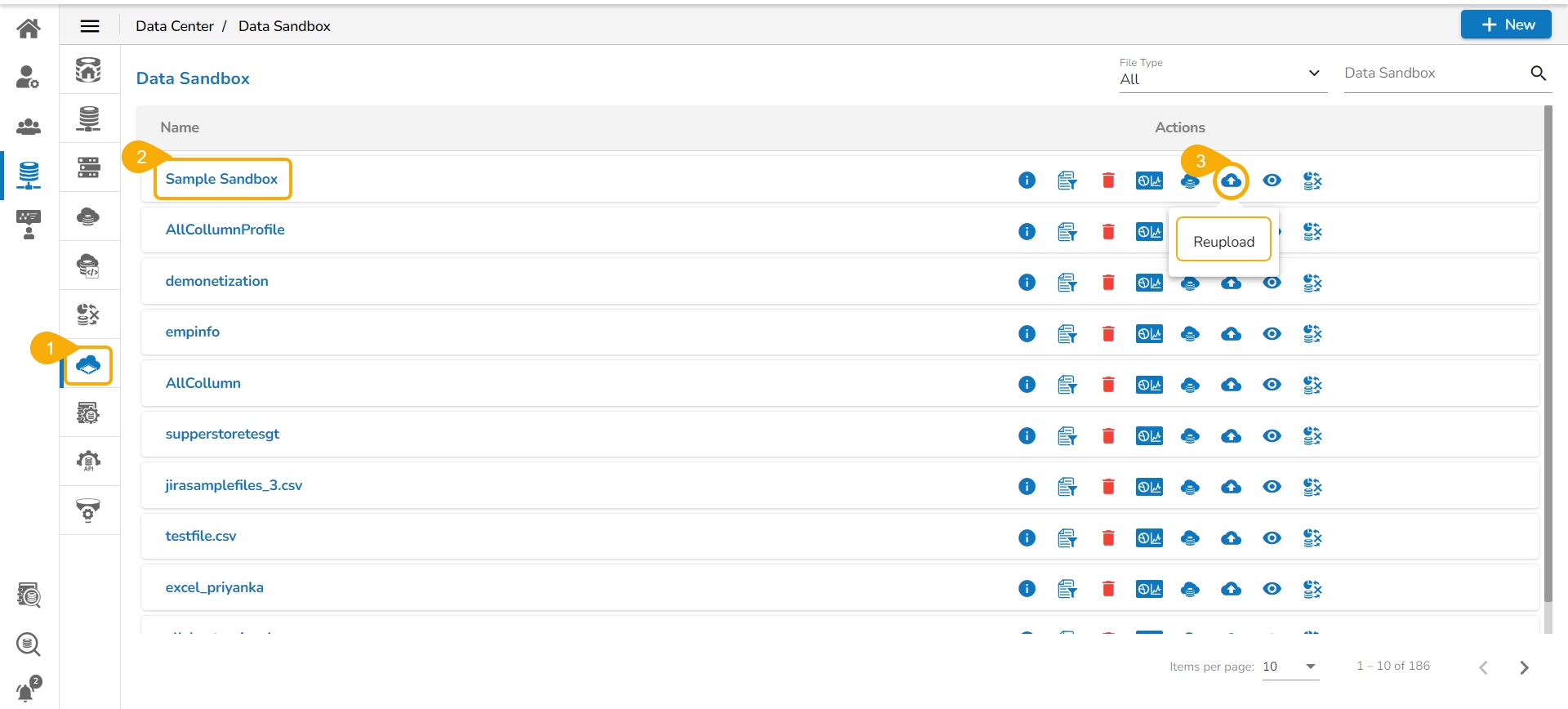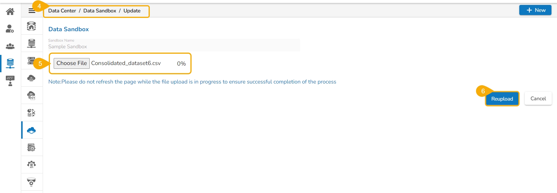 The user can reupload the Sandbox file if some file has not got uploaded while creating the Sandbox entry.