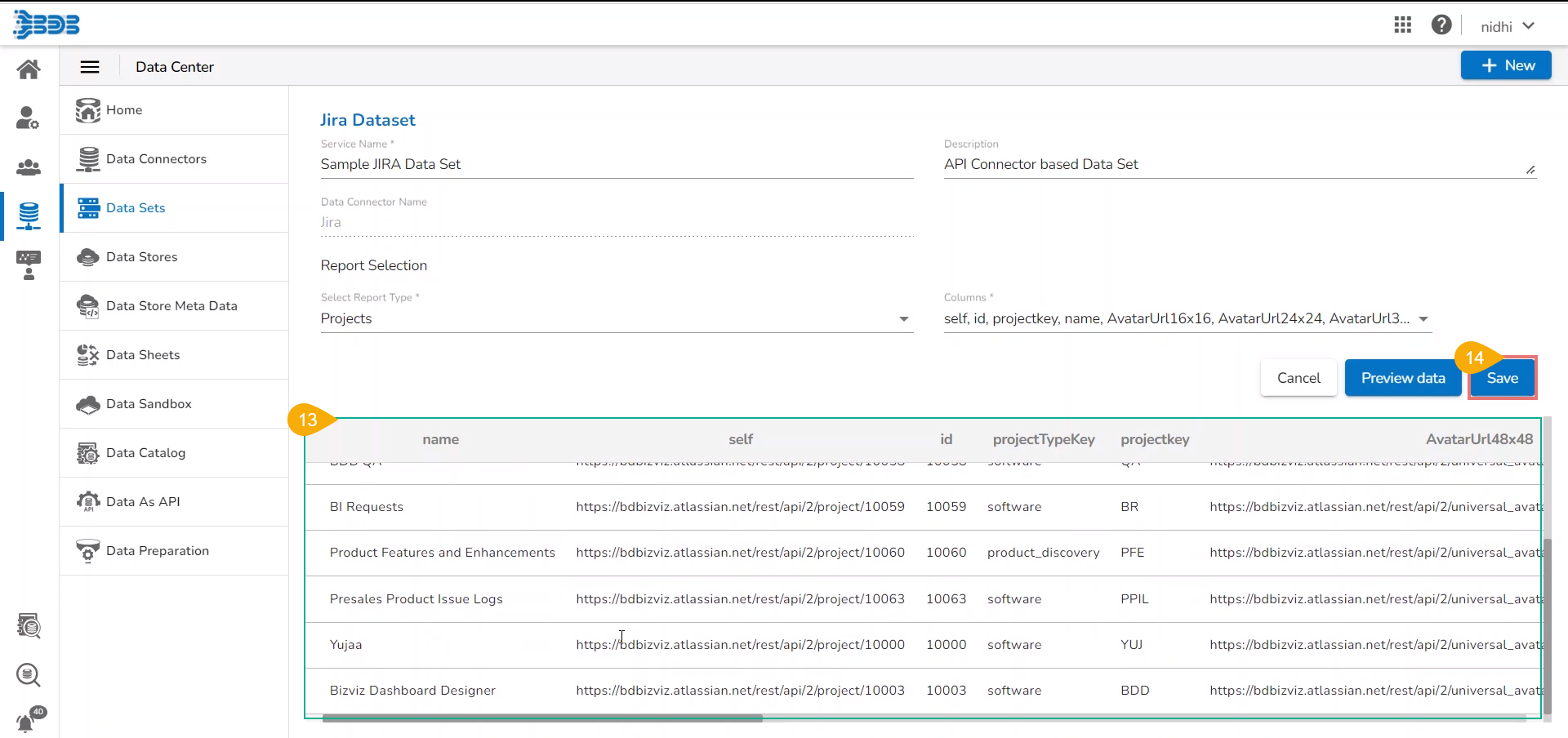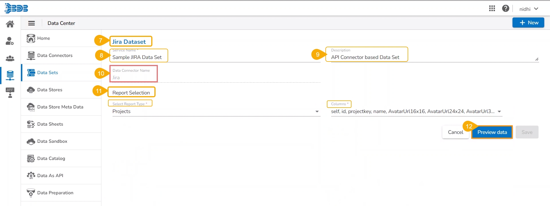 Select a data connector from the displayed list (E.g., in this case, a JIRA data connector is selected).