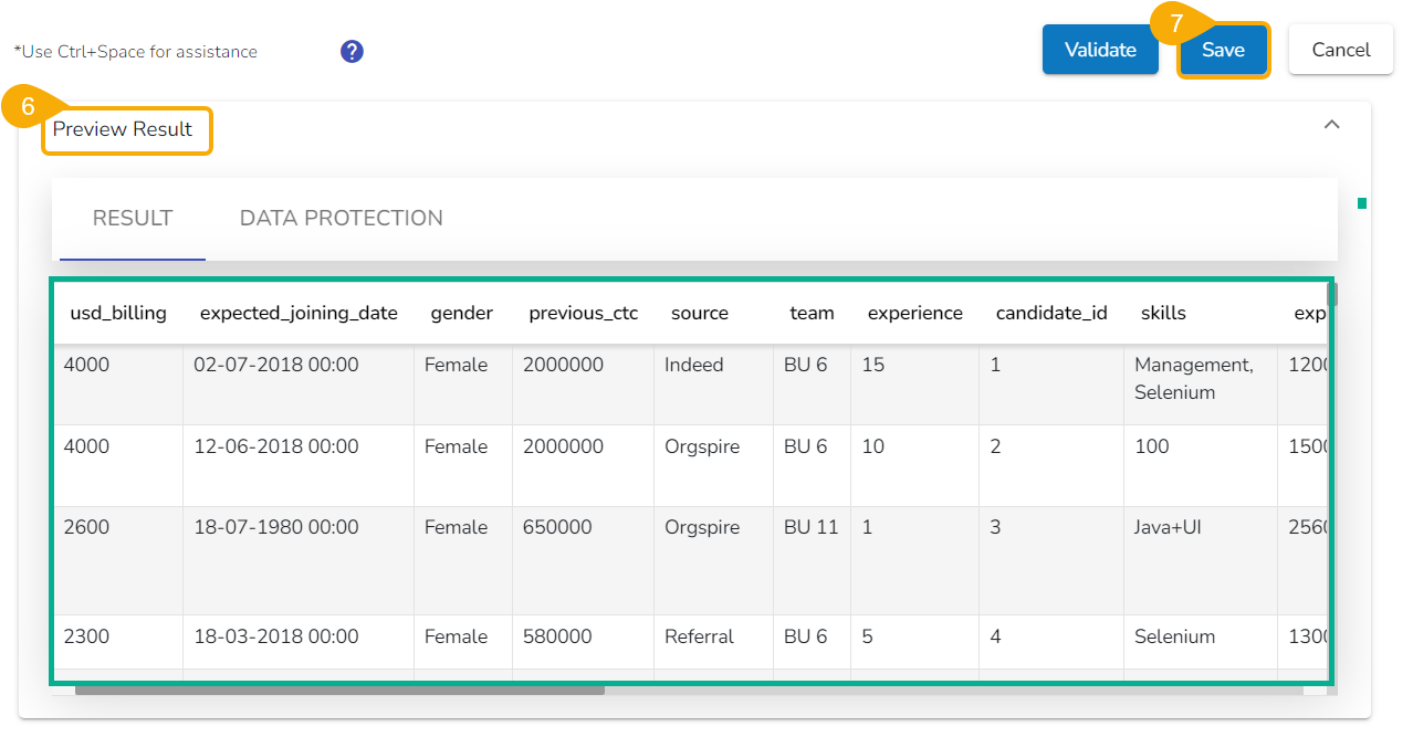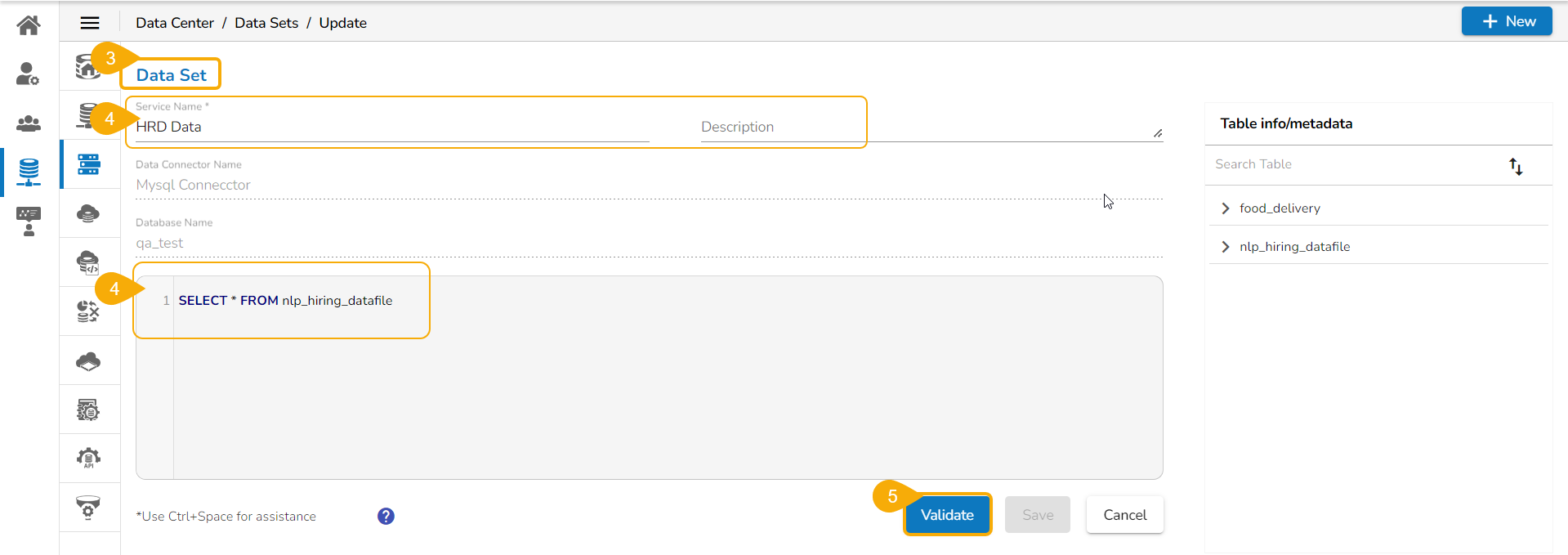 Click the Validate option after modifying the data set.