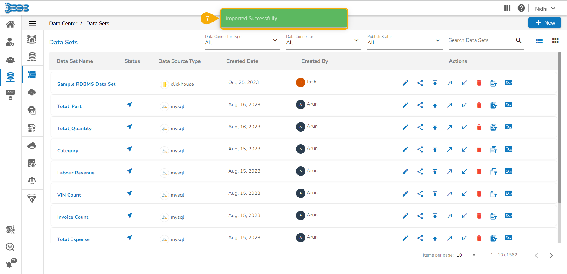 A confirmation message appears once the selected version of Data set is pulled from the VCS.