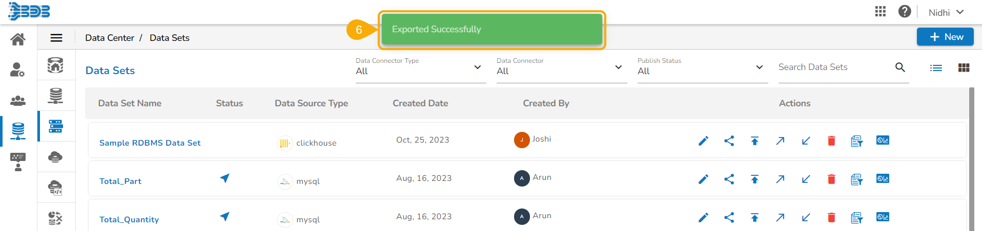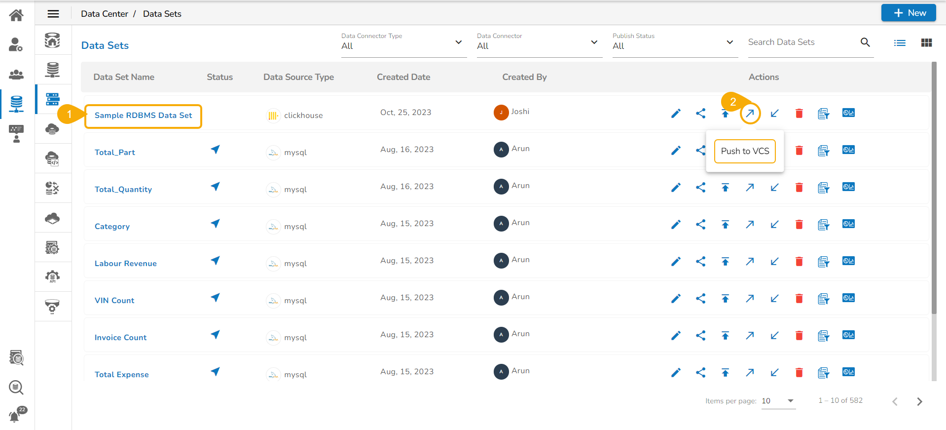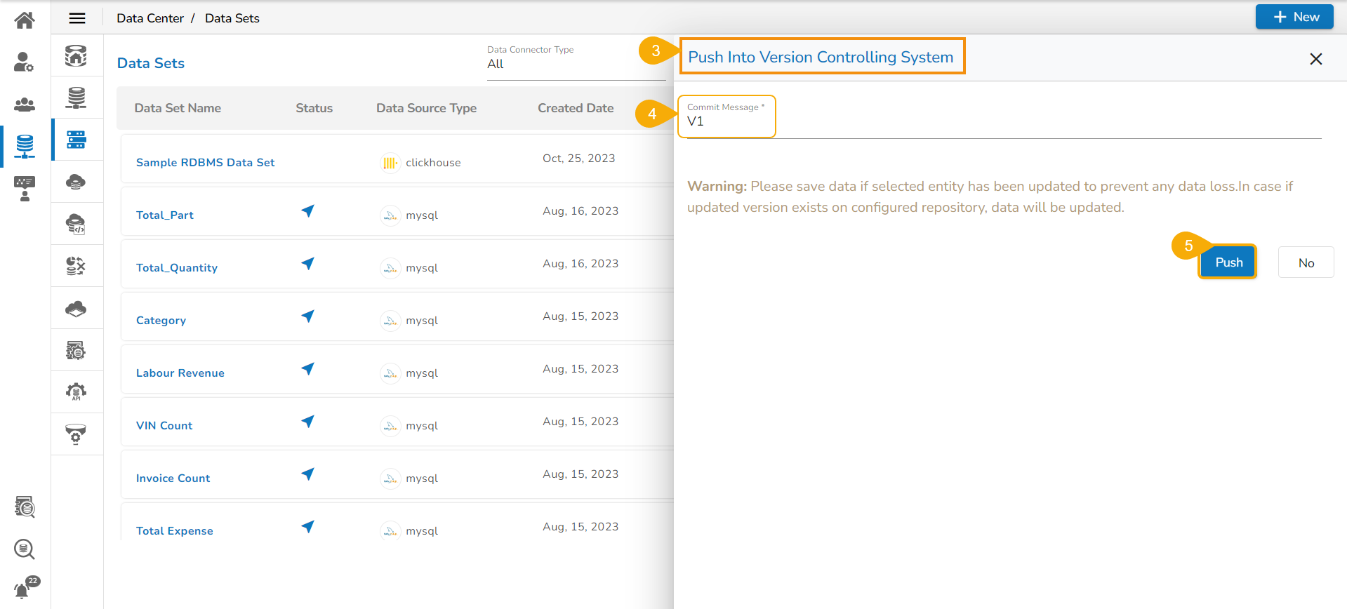 A confirmation message appears and the Data Set version gets pushed to the VCS.
