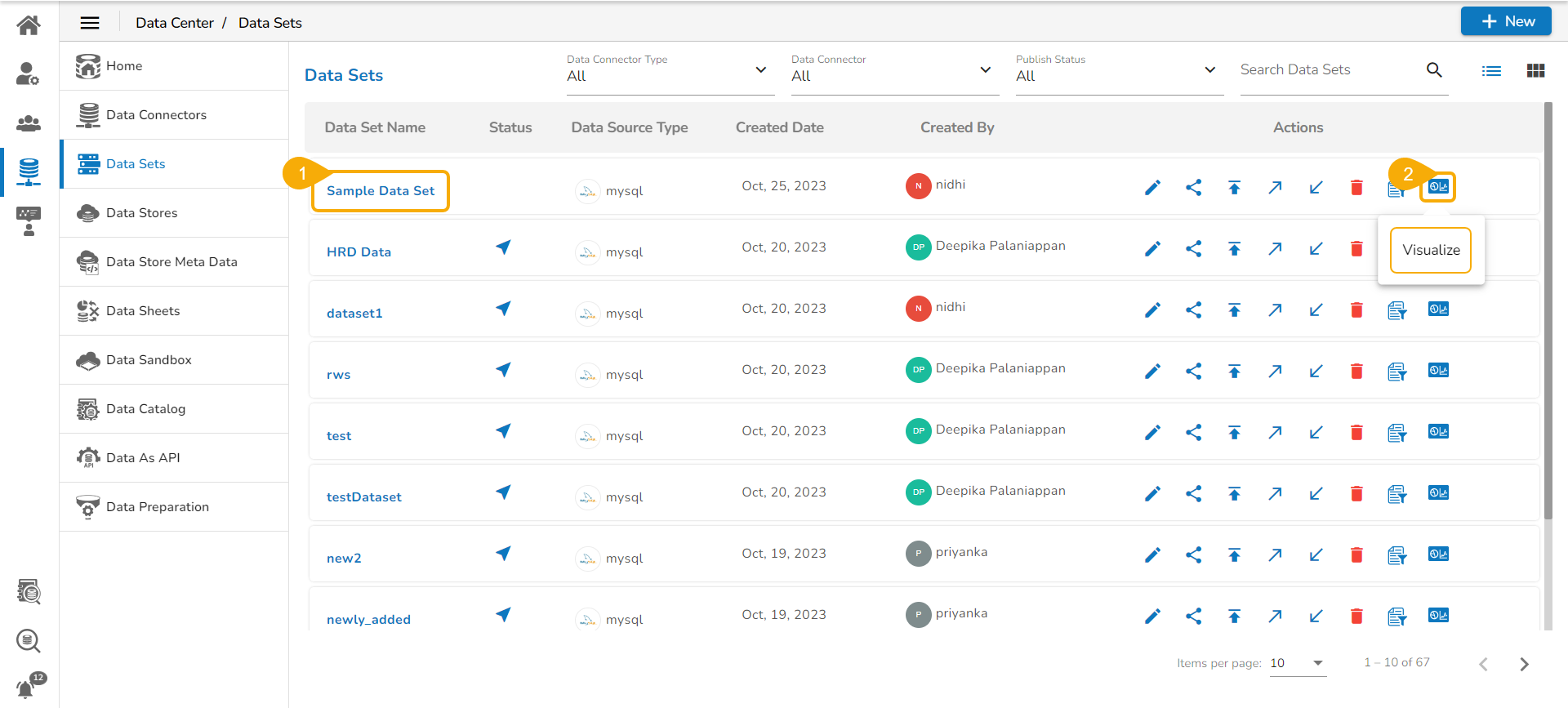 The saved widget can be seen in the drop-down while opening the Widget Visualizer next time for the same Data Set.