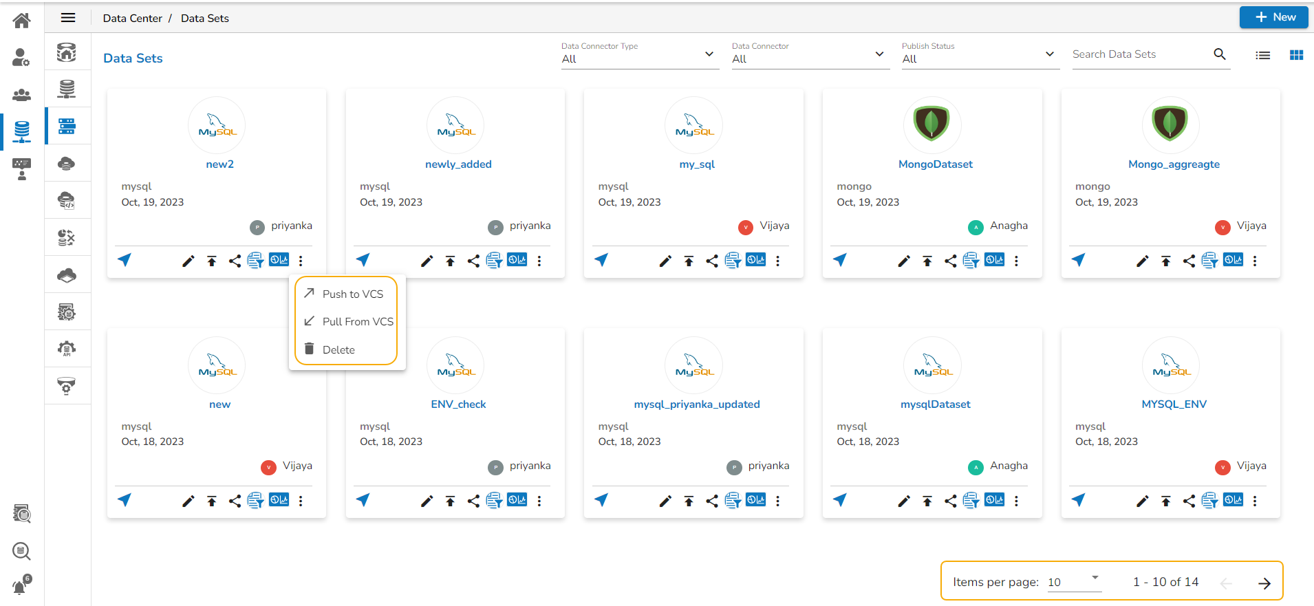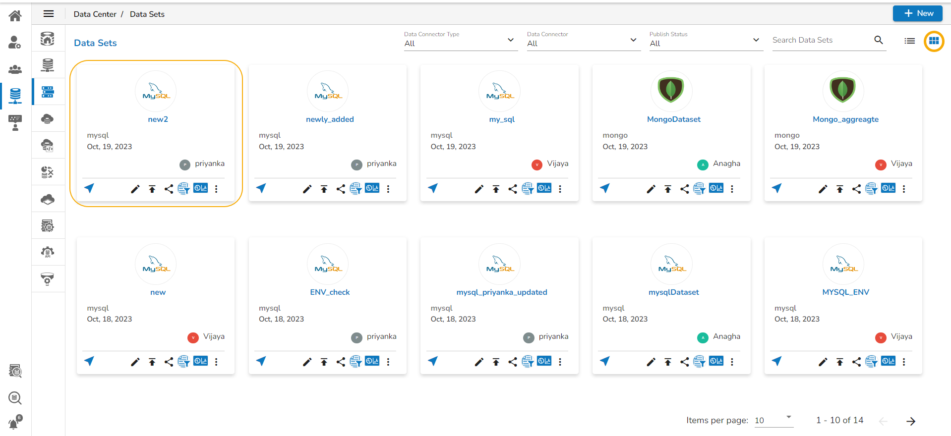 to view all the Data set details in a list format. It is the default view for the Data Sets list.