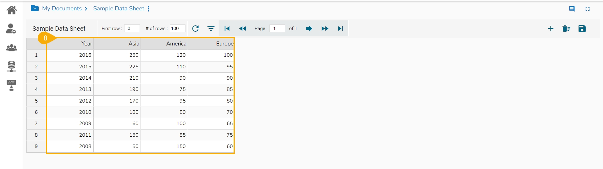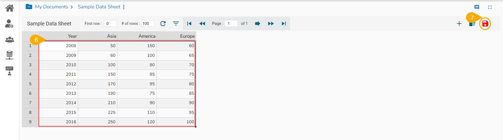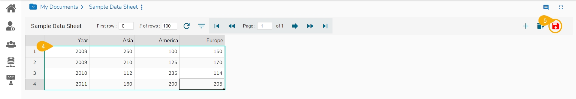 The user can create a meta-structure of the Data Sheet using the Data Center module and later insert data from an excel file. The user can directly copy and paste data to the published Data Sheet.