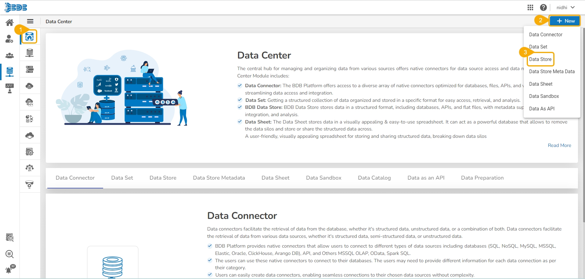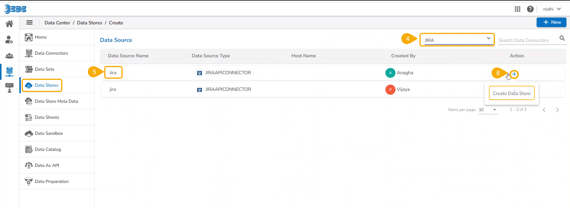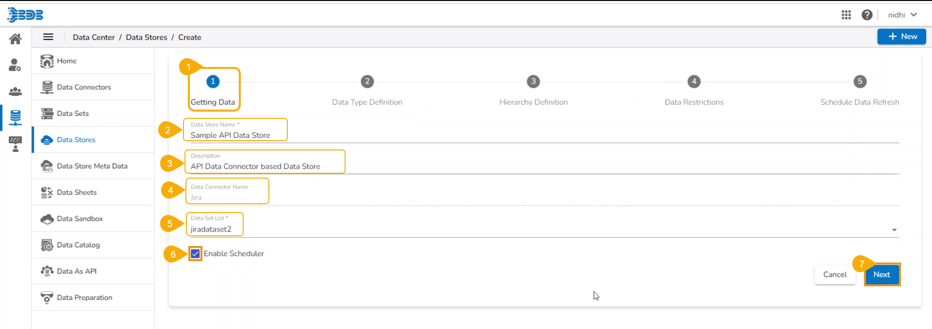 This page displays step-by-step process on how to create an API Data Connector based Data Store.