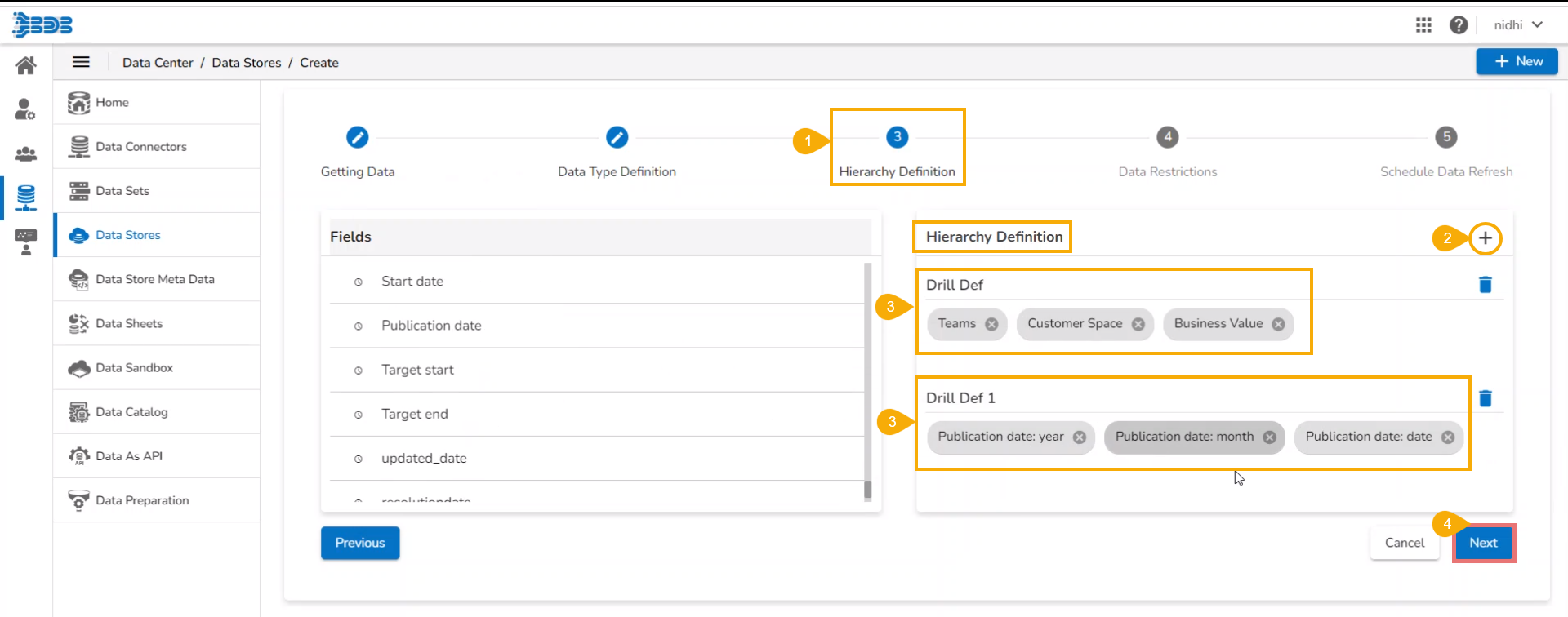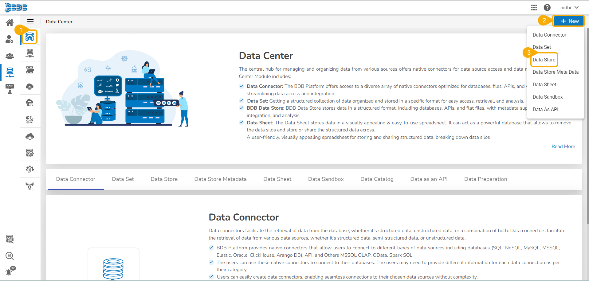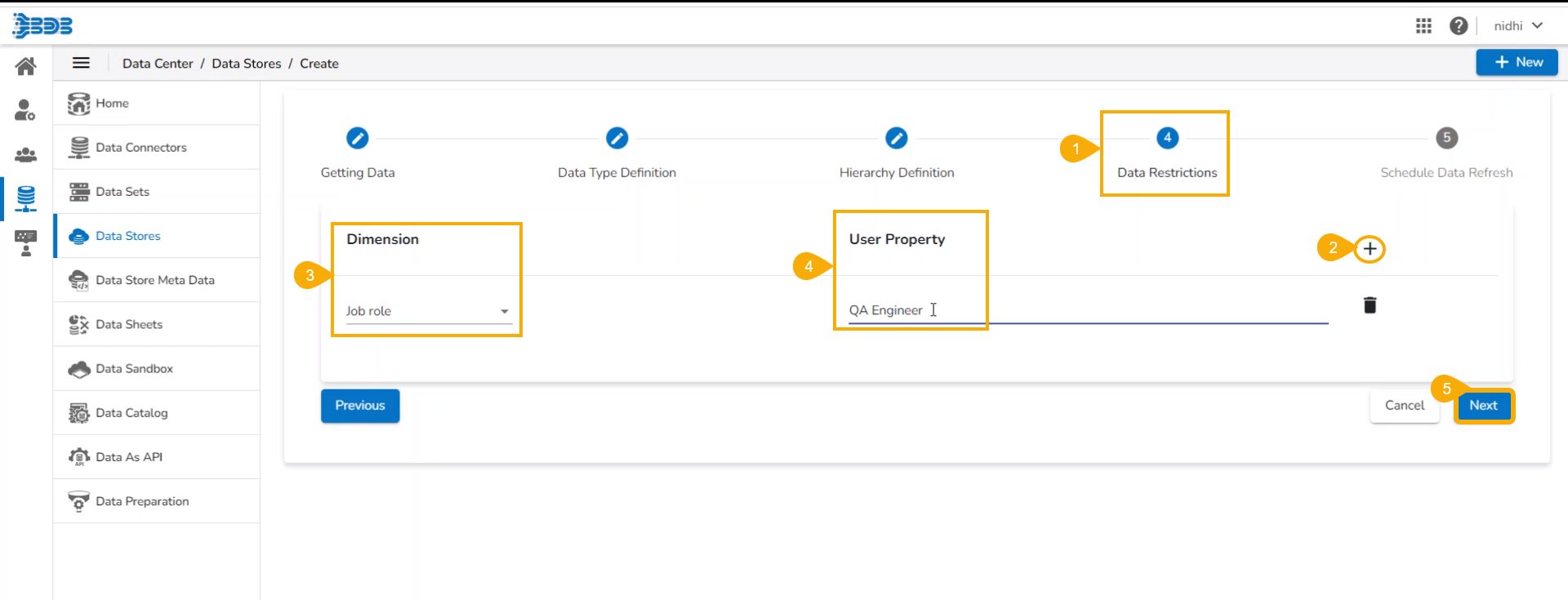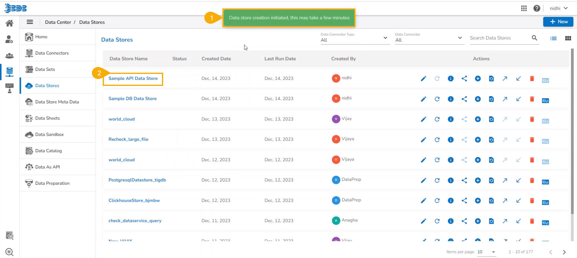 This page displays step-by-step process on how to create an API Data Connector based Data Store.