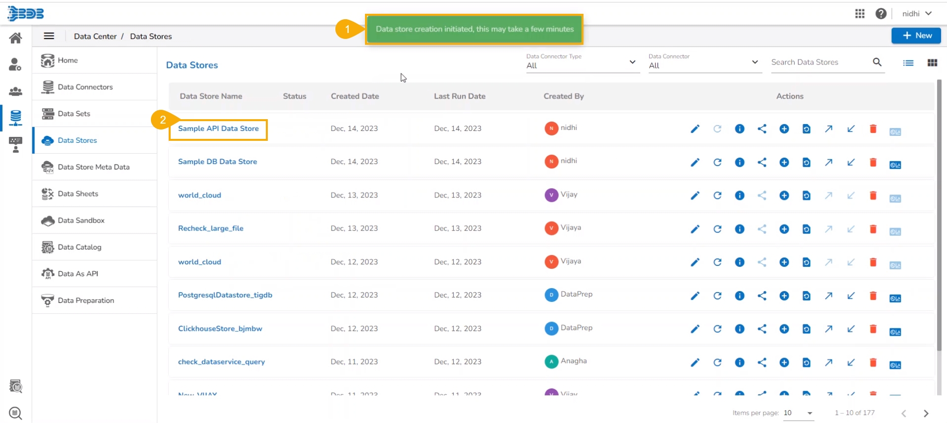 Check out the given walk-through on how to create a Data Store based on an API Data Connector.