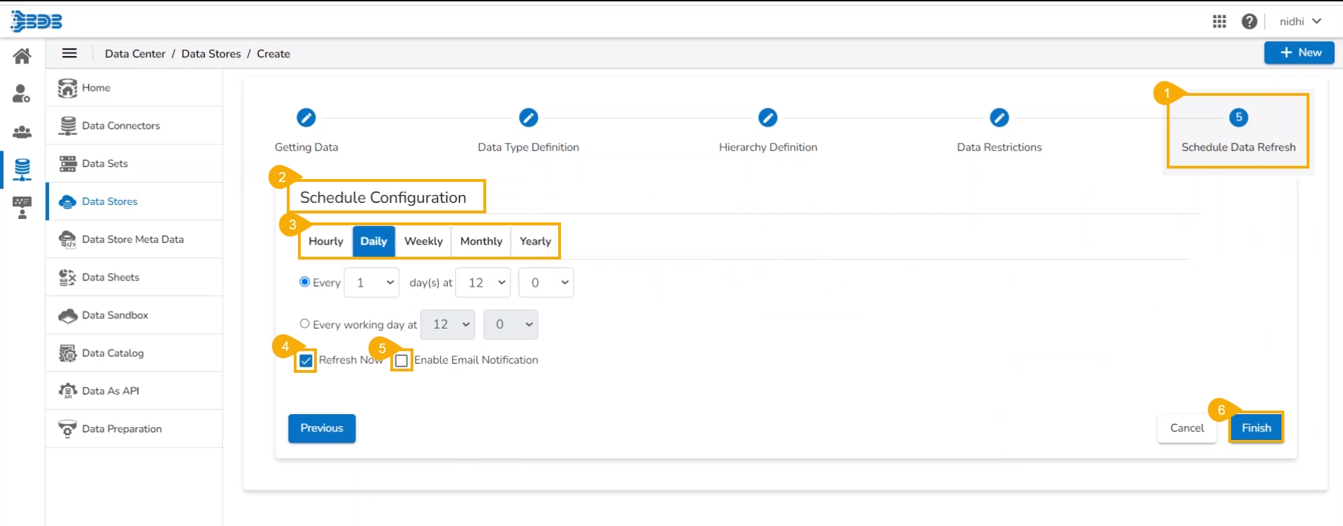 Select the Refresh Now option by enabling the box to refresh the Data Store immediately after its creation.